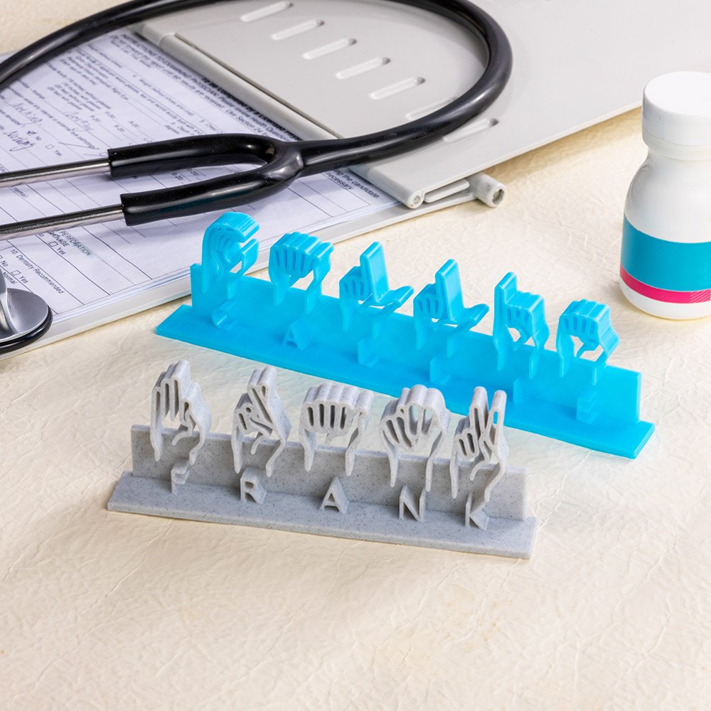 Made from durable PLA material, it withstands daily use while maintaining its vibrant colors and clarity. 3D printing technology ensures that the ASL symbols and names are visible, making it an eye-catching feature on any desk. The sturdy construction means it can stand on its own, providing stability and durability, ensuring it remains a treasured item after daily use.