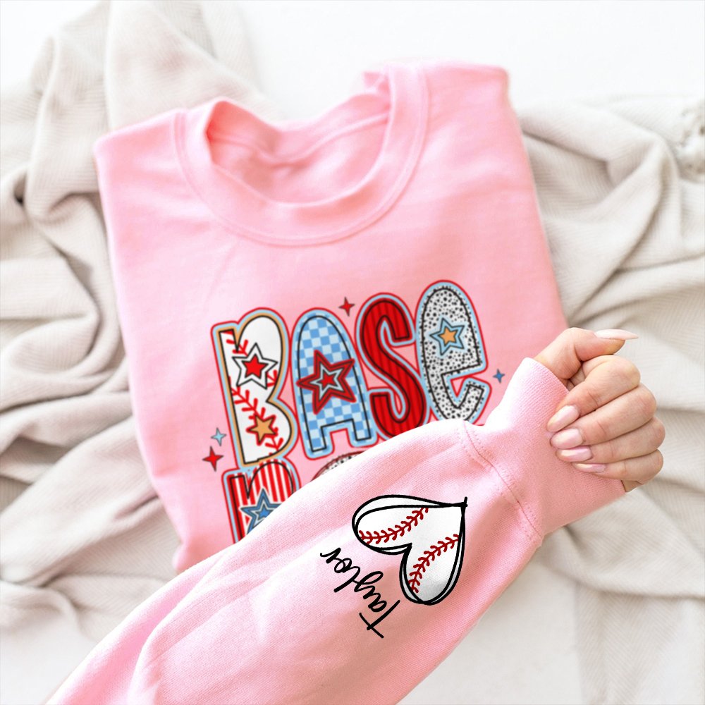 Our garments stand out with a coquette design, capturing the heart of every woman. The eye-catching title "Baseball" features playful checks and stripes, decorated with vivid ribbons and stars, showcasing a sweet, fresh, and charming beauty. The left cuff also is printed with heart-shaped baseball motifs and a custom text, highlighting the personality and taste of the wearer.