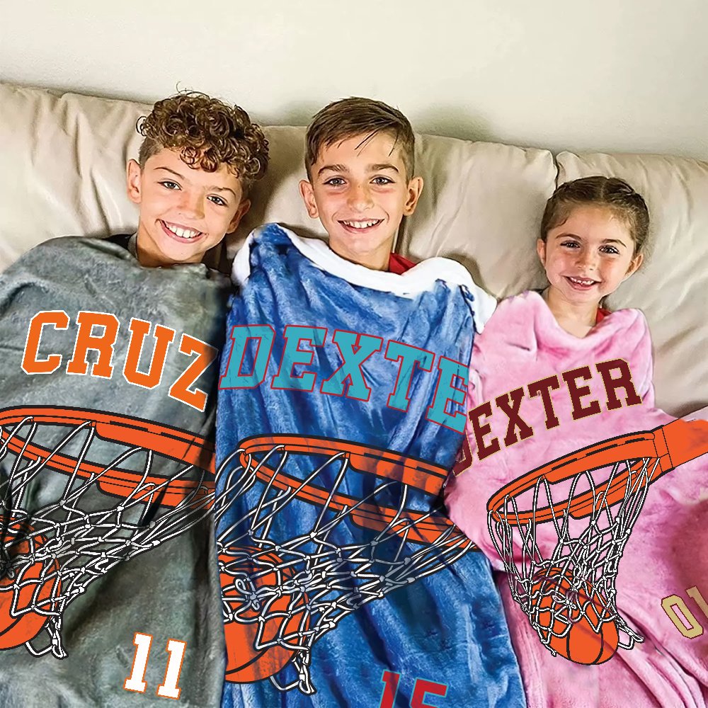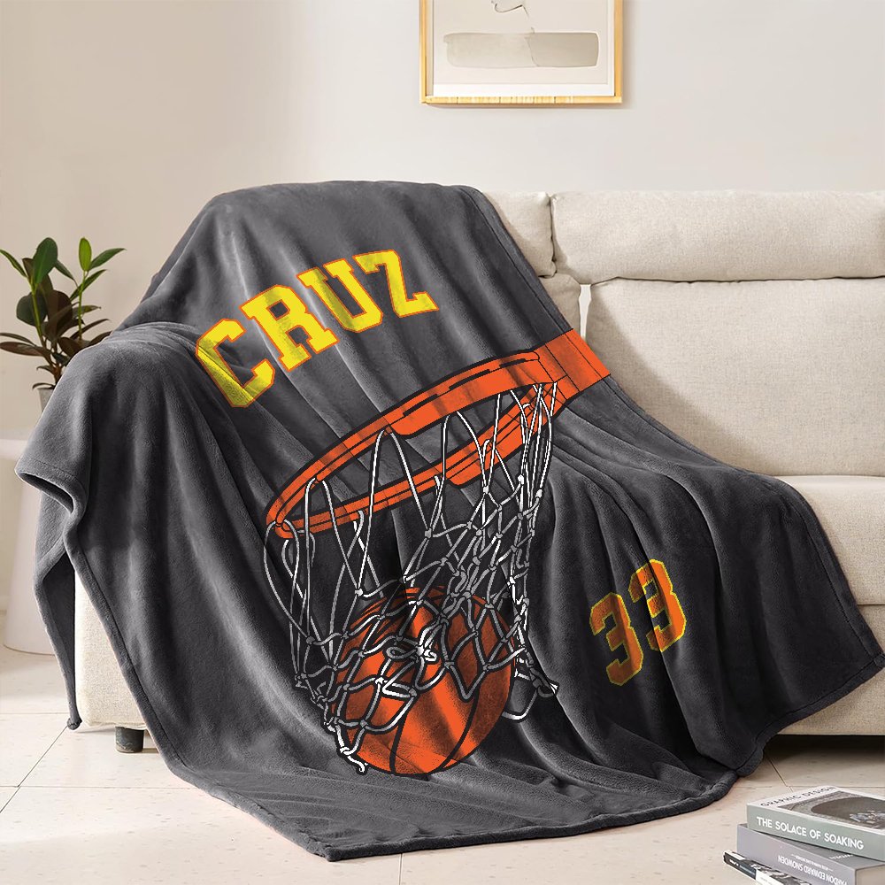 This blanket is designed with the dynamic pattern of a basketball passing through the basket as the core, full of sports vitality and passion. The blanket is printed with customizable names and numbers, making each blanket unique. 28 different blanket colors enrich your choices.