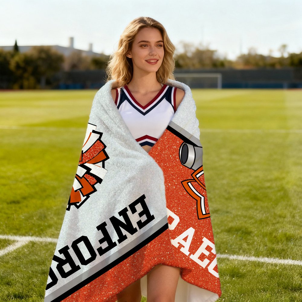 An ideal present for cheer practice, cheer challenges, team celebrations, or as a special gift for your favorite cheerleader. Whether used to keep warm during early morning practices or displayed proudly in a dorm room, this personalized blanket boosts team morale while providing practical comfort. It's more than just a blanket—it's a tangible expression of team pride that will be cherished throughout the season and beyond.