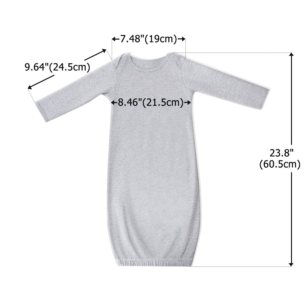 | Measurement: | Suitable for Babies 0-3 Months: Shoulder Width - 7.48"(19cm), Sleeve Length - 9.64"(24.5cm), Chest - 8.46"(21.5cm), Grown Length - 23.8"(60.5cm) |