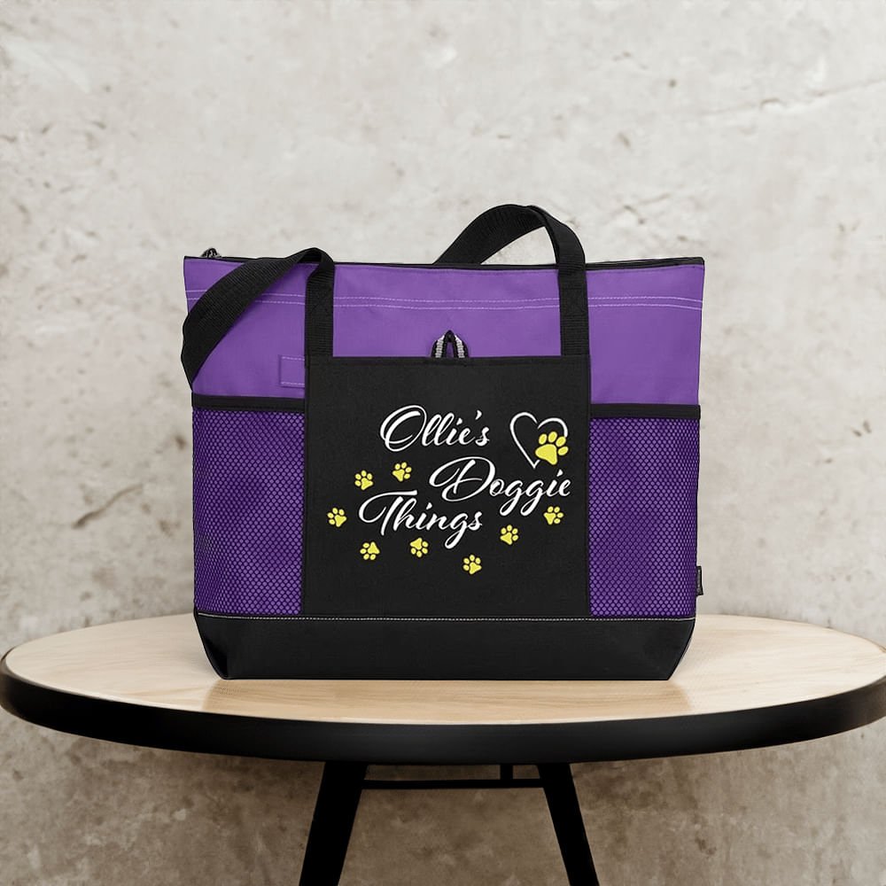 The bag is printed with the text "doggie things" and the cute dog paw mark, showing the pet owner's unique taste and full of love for their pets. You can also design the text and name according to your own needs, which not only shows personality but also adds a touch of warm fun.