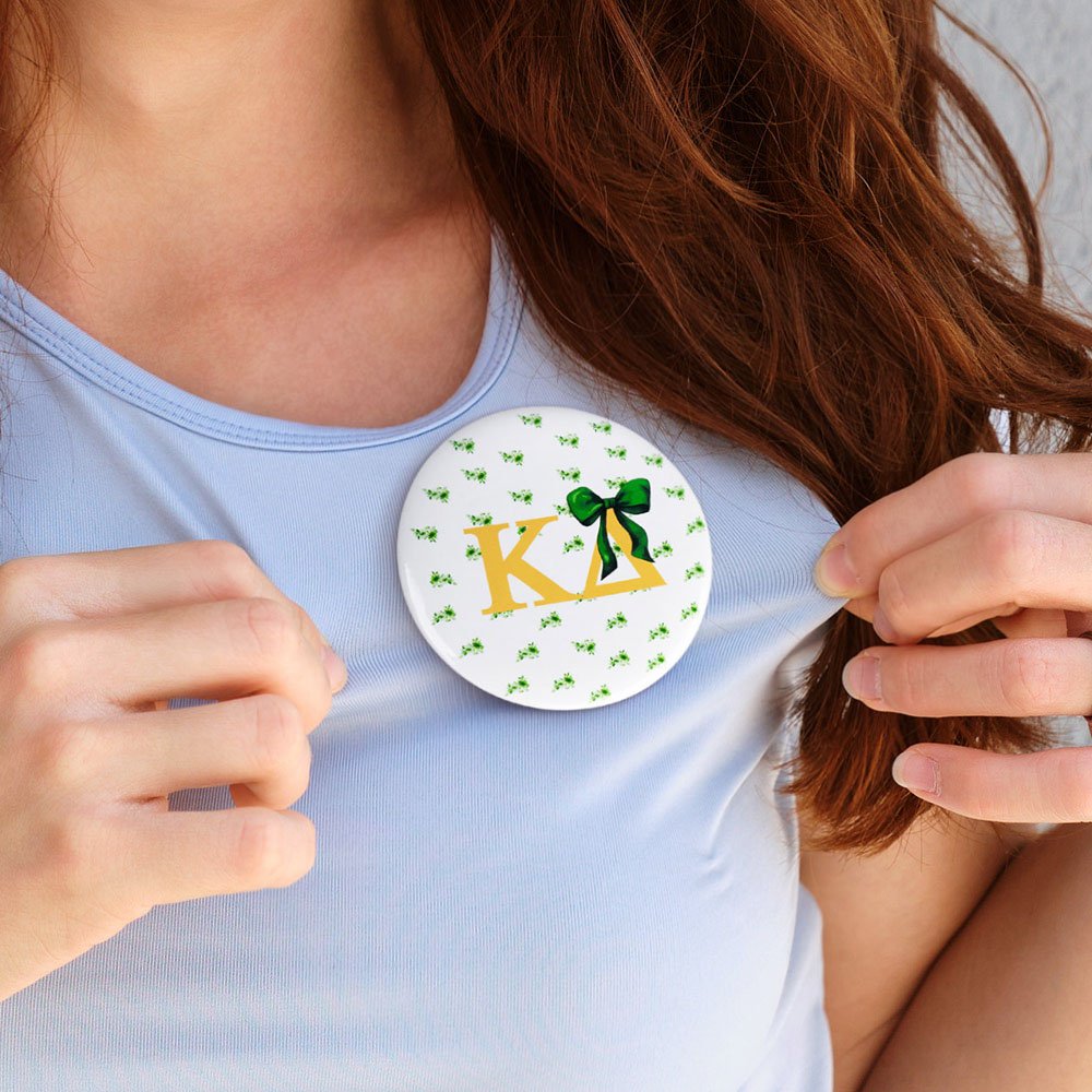 This acrylic pin badge features initials paired with bows. And you can personalize your sorority’s name, allowing you to celebrate your unique affiliation in style. The option to add individual names makes each pin a special and meaningful gift for your sorority sisters.