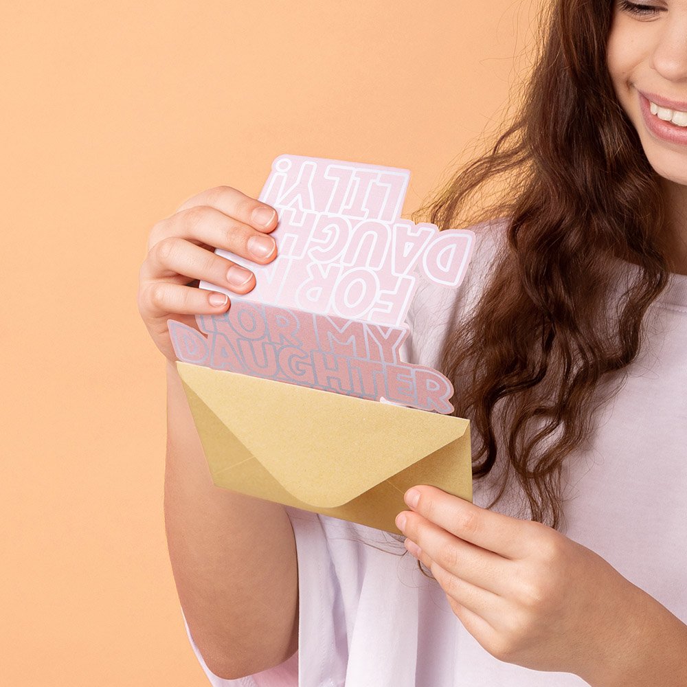 The greeting cards are made from high-quality cardstock. This ensures that the cards are sturdy and long-lasting. The cardstock provides a smooth surface for the letters, enhancing their shine and clarity. It also gives the cards a substantial feel, making them a pleasure to hold and send.