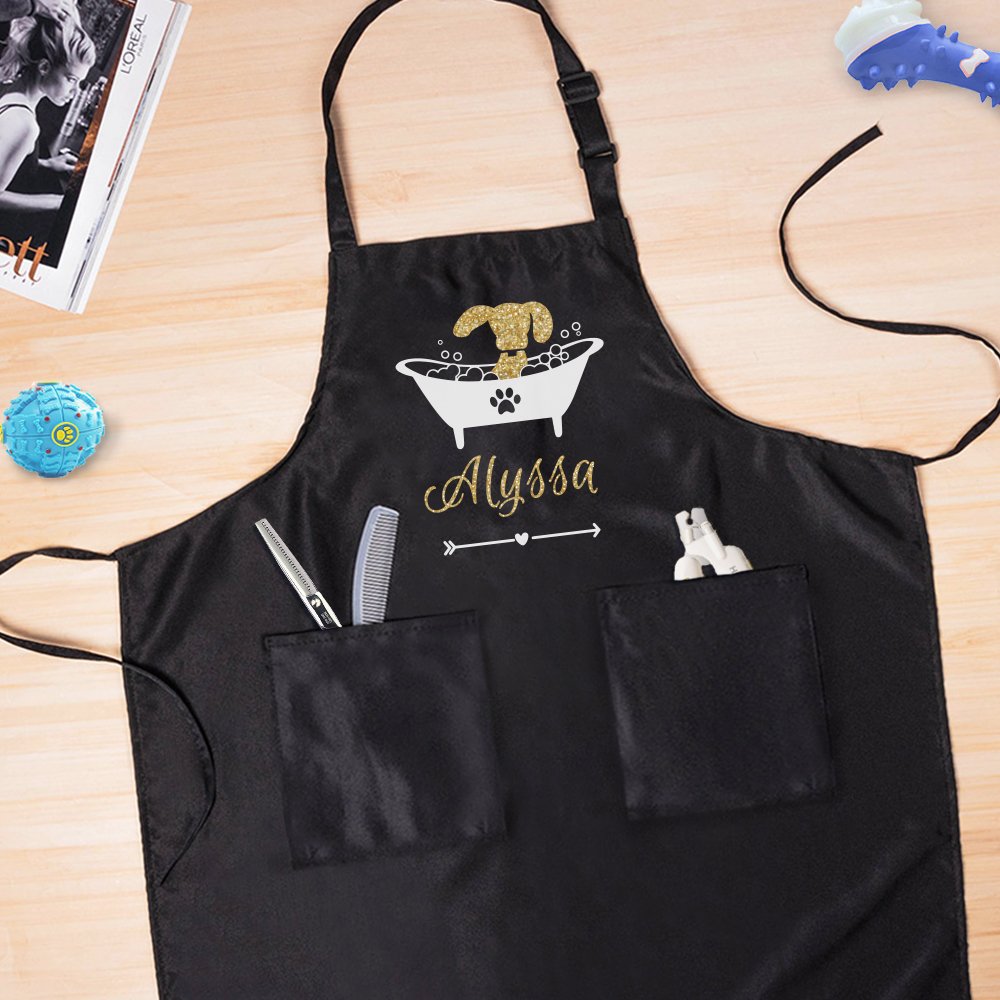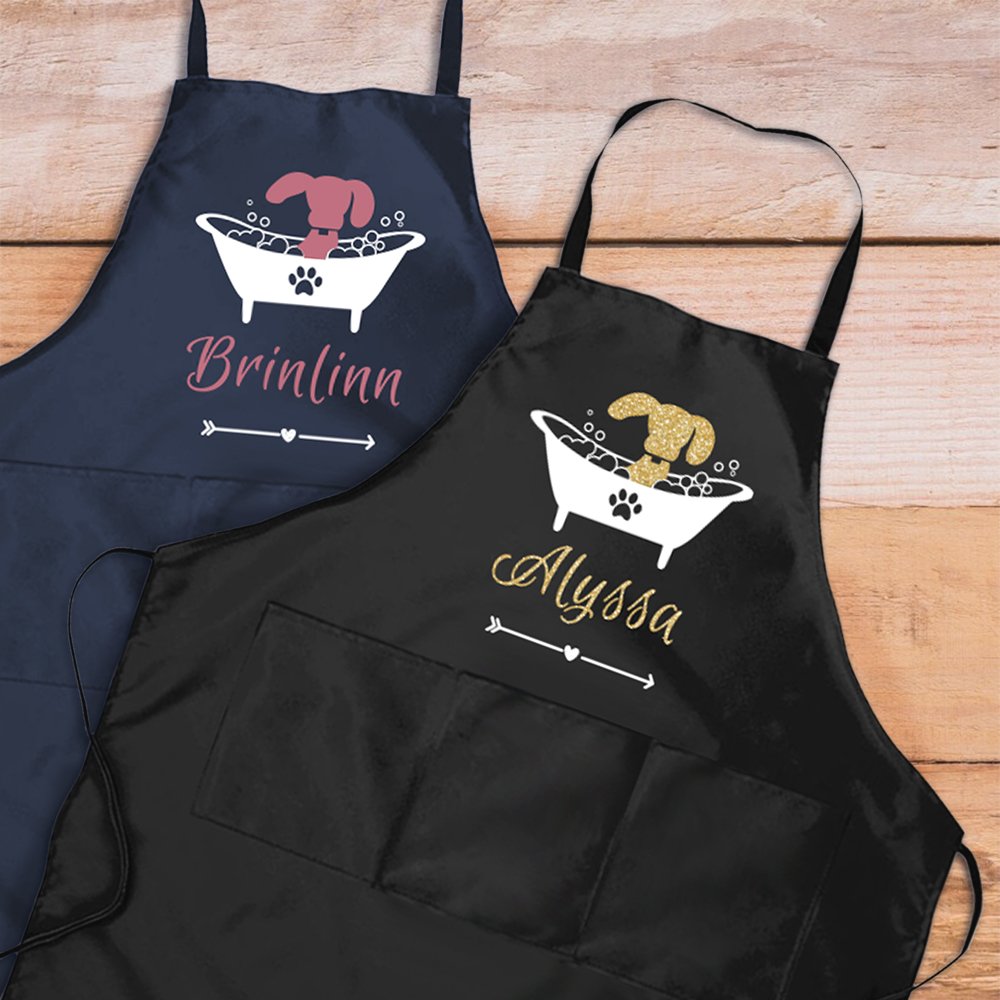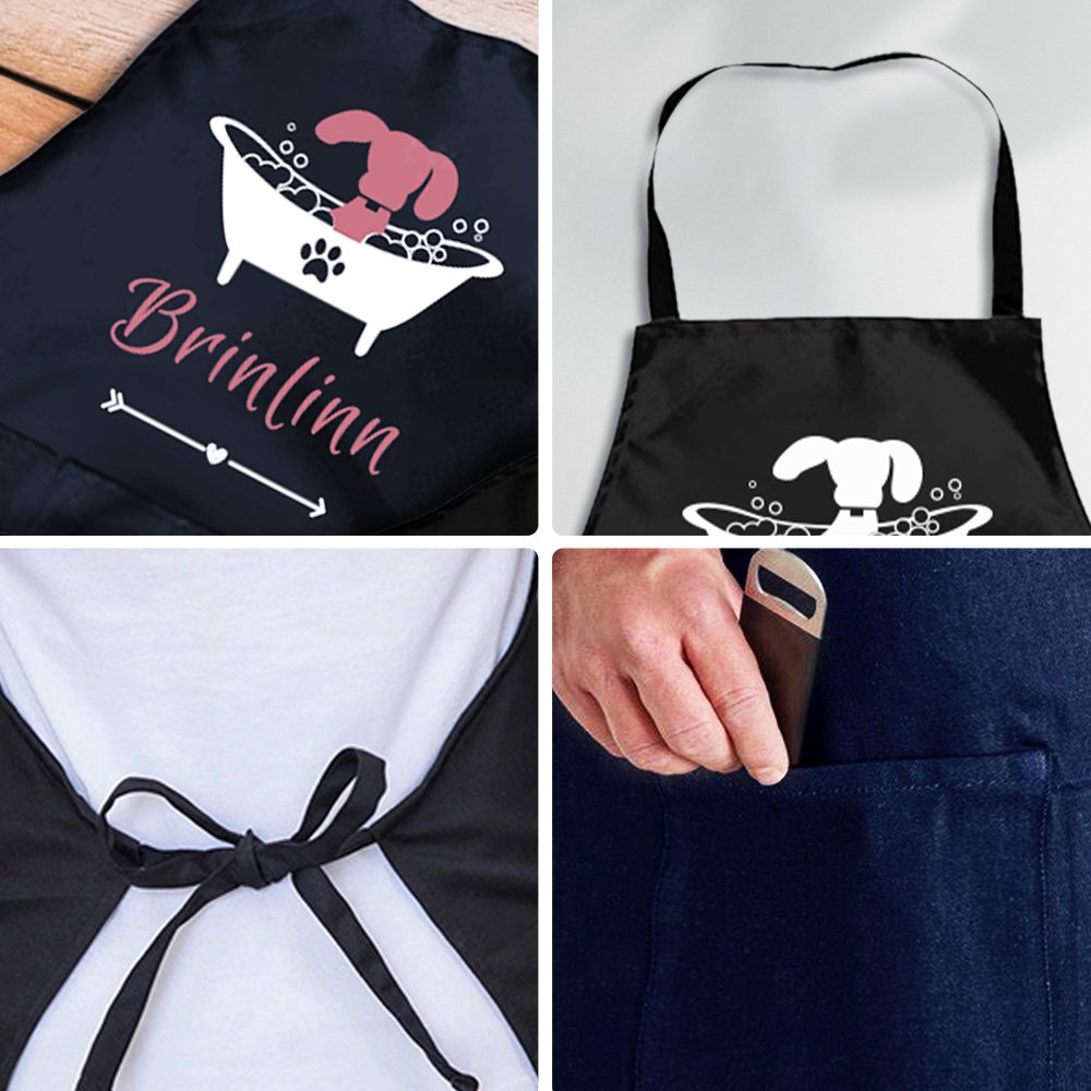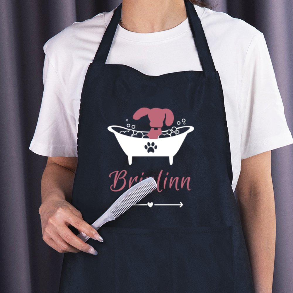 This personalized apron is a thoughtful and unique present for the dog owner, lover, or professional pet groomer. It shows that you understand their passion for dogs and want to give them something practical and beautiful, whether for a birthday or an anniversary or just because this apron is a great choice.