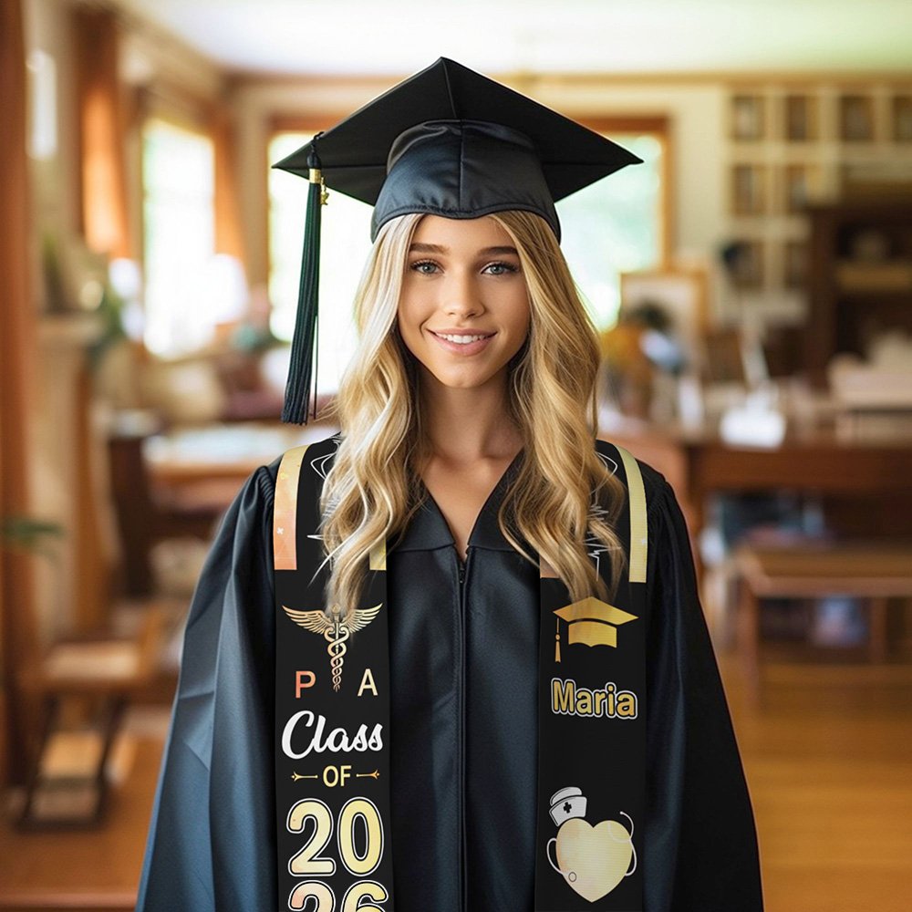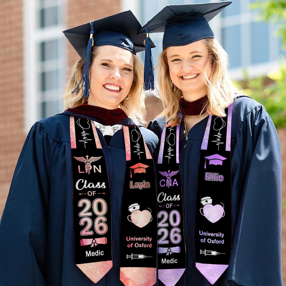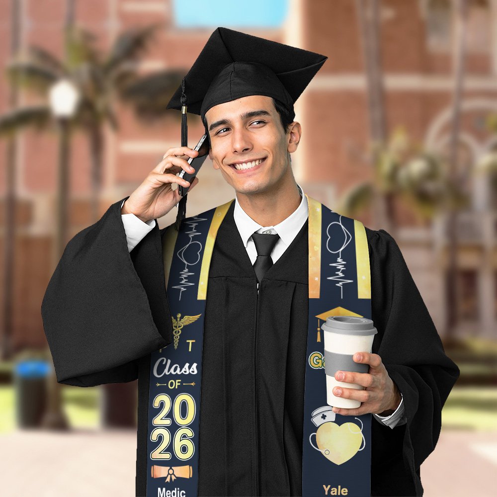 This graduation Stole is designed for medical graduates, integrating multi-color medical symbols and medical equipment elements, symbolizing their future professional mission. You can customize the name, occupation, year, school name, and other information for your beloved graduates, making this gift unique and full of heart.