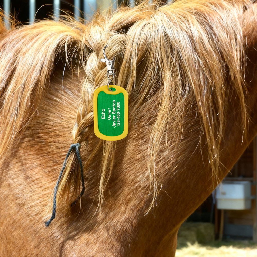 Made from durable aluminum, this horse tag is built to withstand outdoor conditions and daily wear. The high-quality construction ensures that vital information remains legible and intact, providing peace of mind for horse owners while ensuring their horses are easily identifiable.
