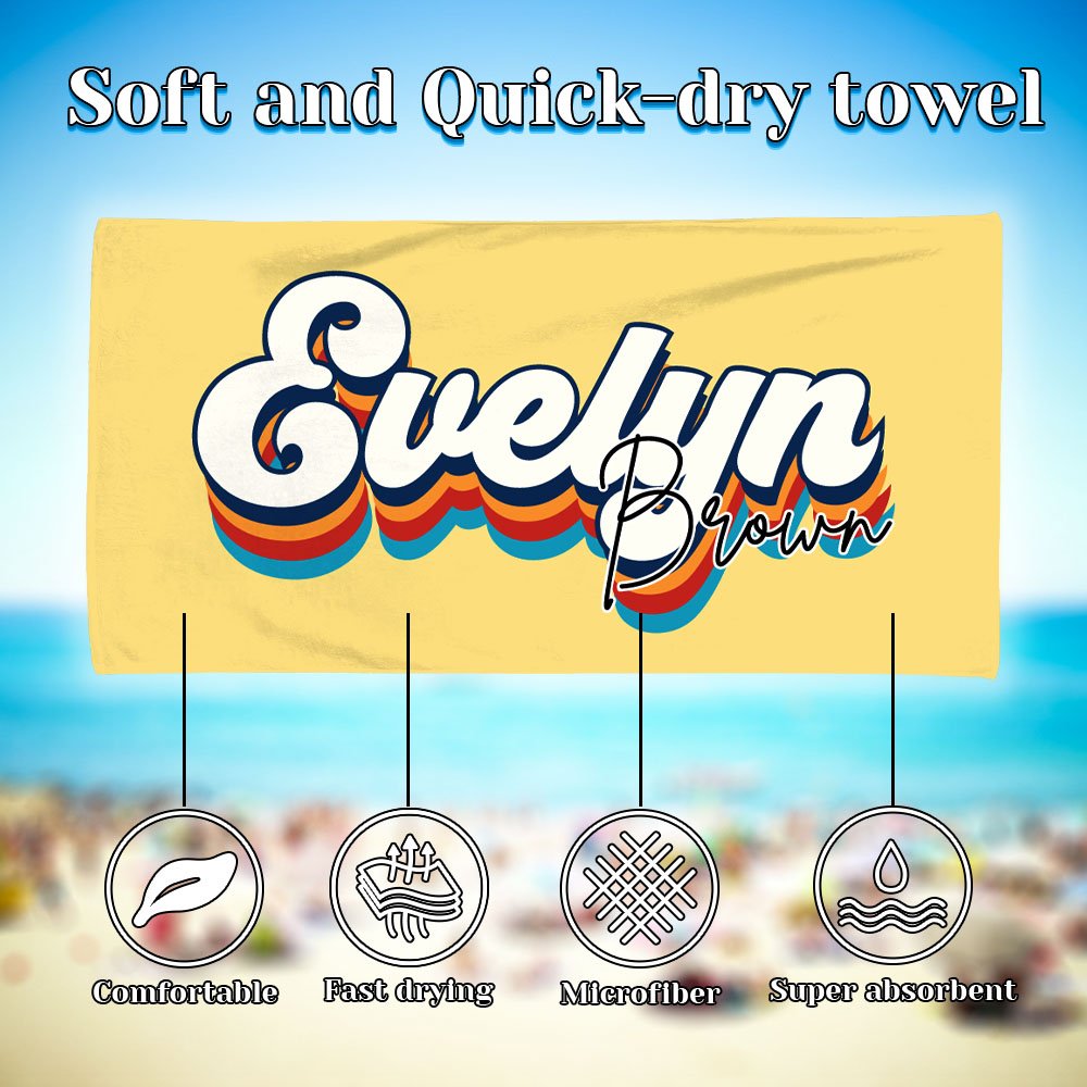 | Feature: | Super Absorbent, Fast Drying, Sand Free, Durable and Soft, Oversized, Lightweight and Portable, Name Customization |