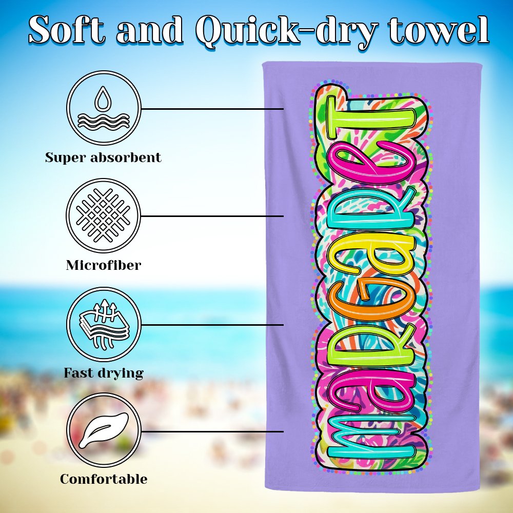 Our multicolor paisley beach towel is a delightful sight that adds color and style to any beach outing or poolside gathering. This towel becomes a unique and eye-catching gift with the option to personalize it by adding your name.