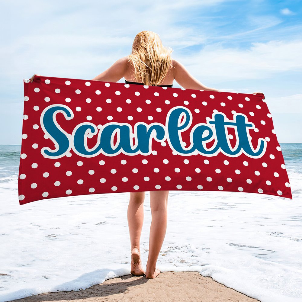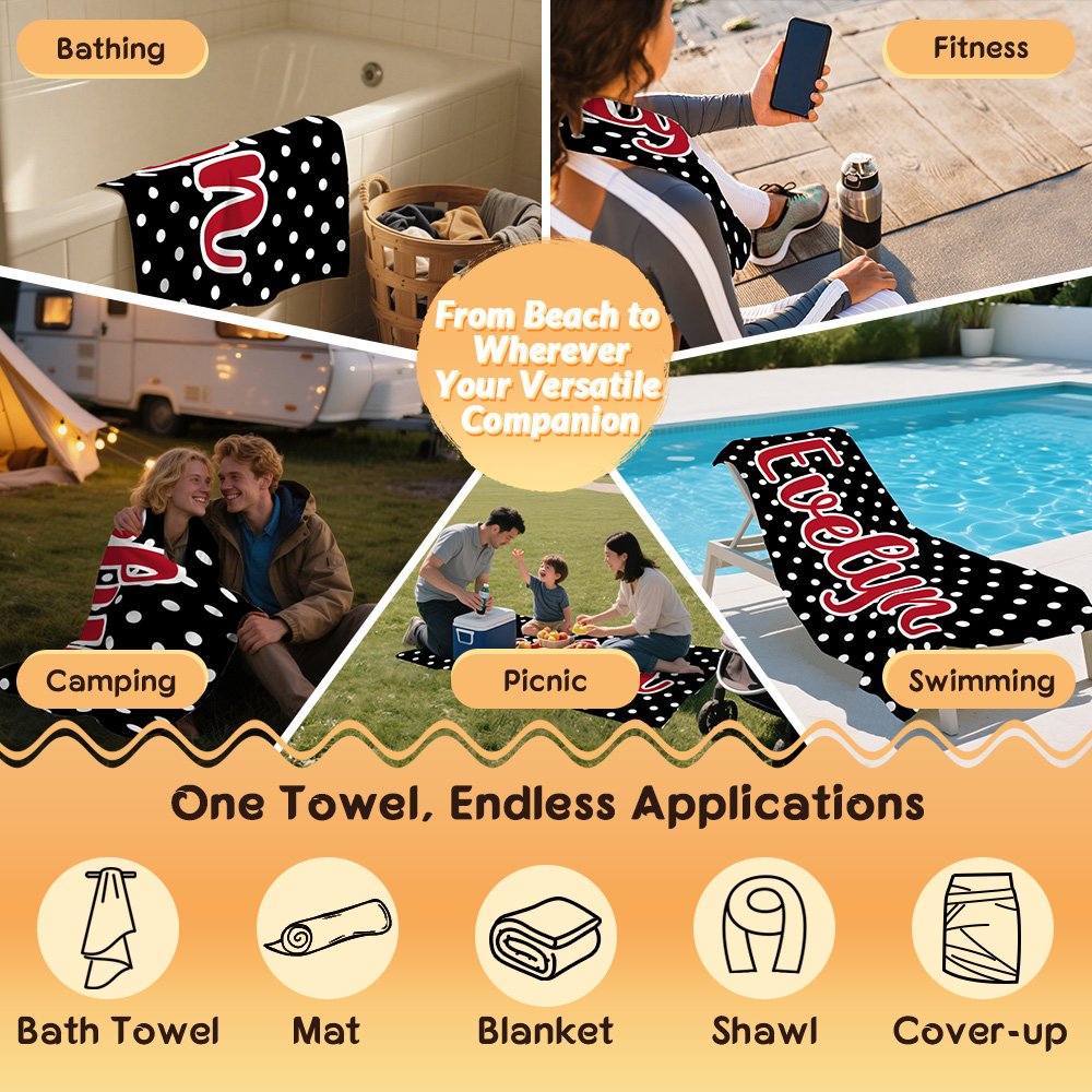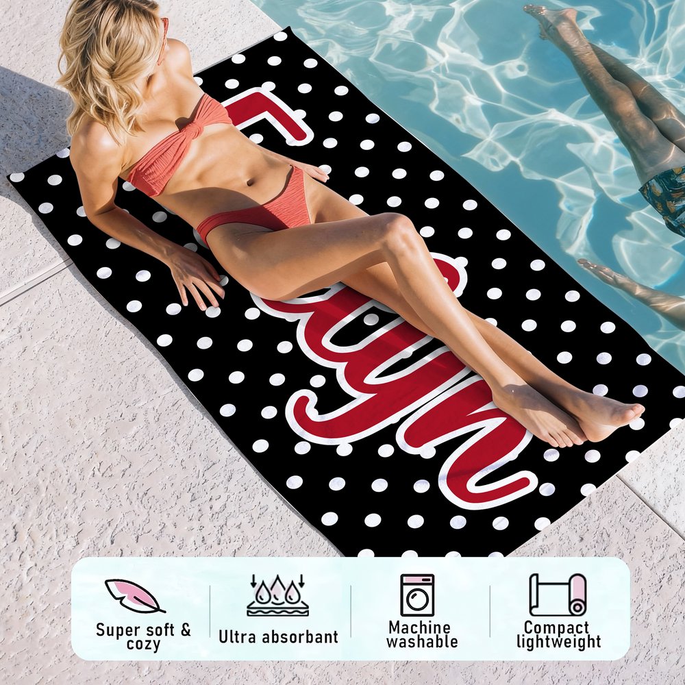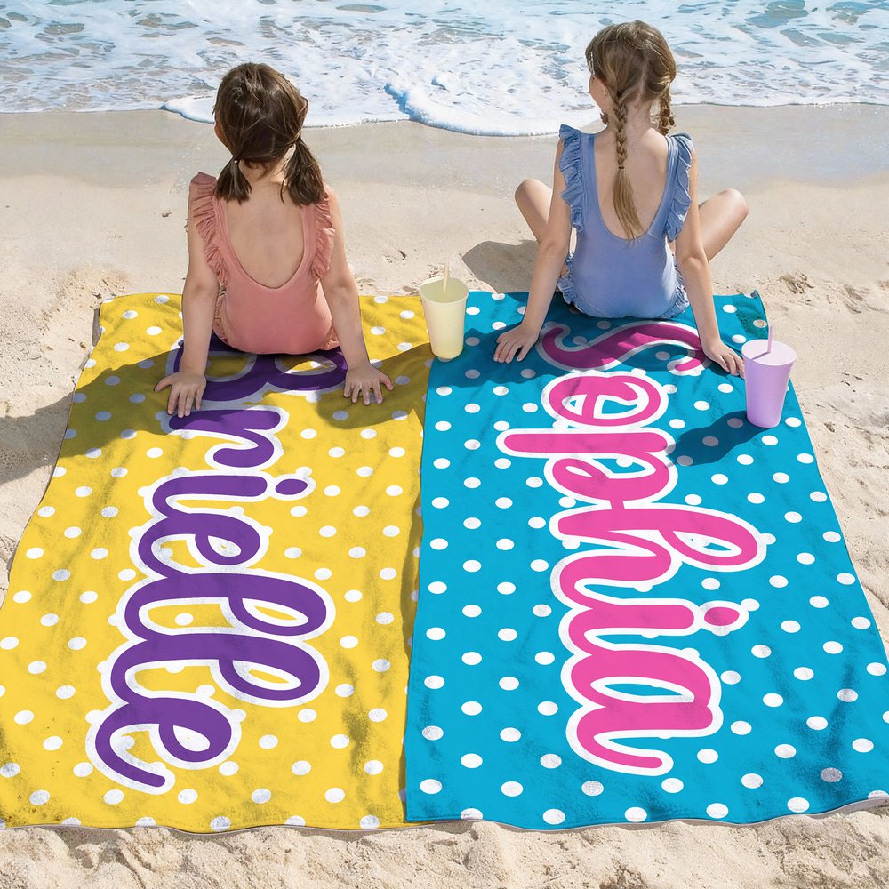 Personalized Multicolor Polka Dots Quick Dry Oversized Beach Towel with Name Travel Essentials Birthday Summer Vacation Party Gift for Friends
