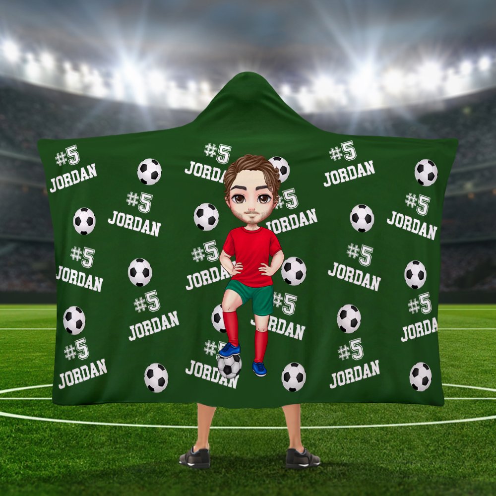 Designed for soccer enthusiasts, this blanket offers 23 color options. The design incorporates a wealth of soccer-inspired elements, showcasing your endless passion for the sport. What's more, you can customize it with a personalized cartoon character and your name, making this blanket a one-of-a-kind item.
