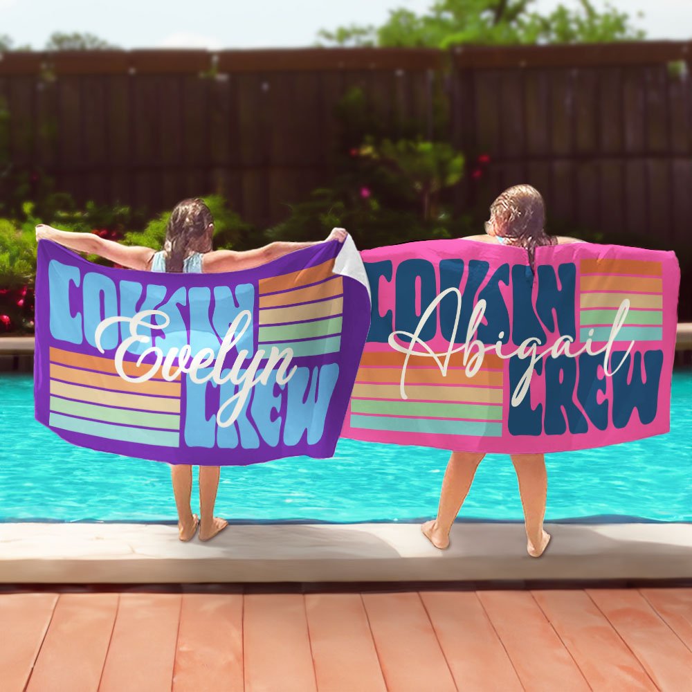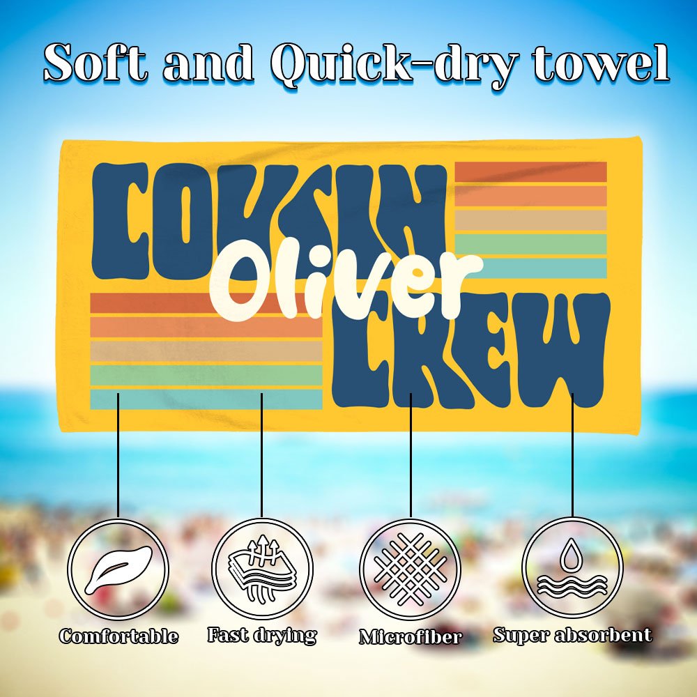This beach towel attracts everyone's attention with its bright visual effect. The bright stripes and the prominent "Cousin Crew" phrase shine in the sun as if showing the enthusiasm and vitality of the beach. You can customize your name on the beach towel to make it unique, which not only highlights your personality but also adds family warmth and intimacy, making every beach vacation full of laughter.
