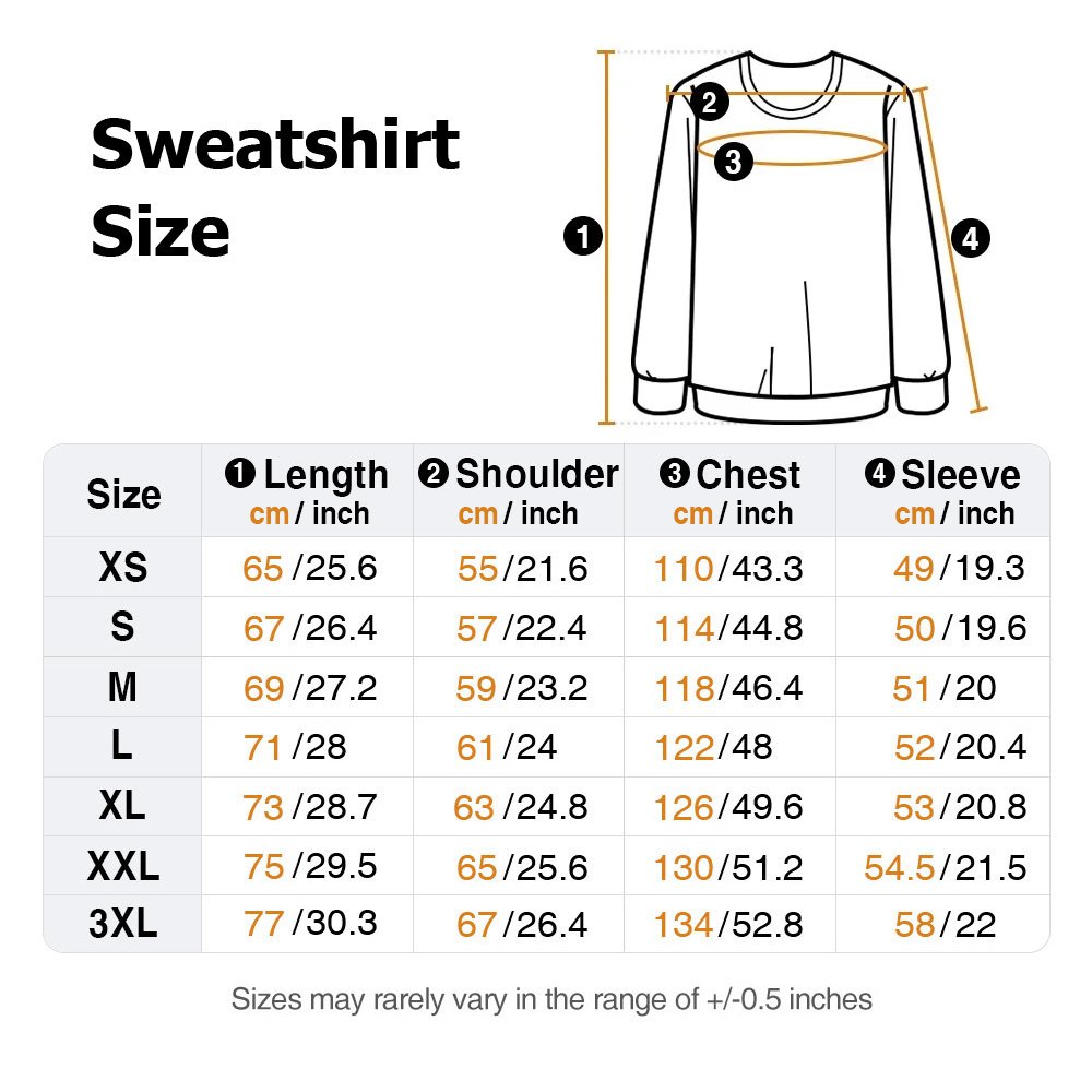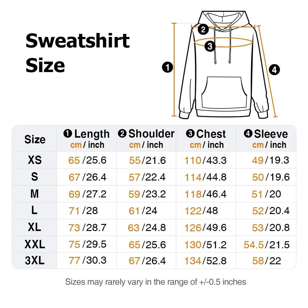 | Measurement: | T-Shirt - XXS, XS, S, M, L, XL, 2XL, 3XL, 4XL, 5XL Sweatshirt -XS, S, M, L, XL, 2XL, 3XL Hoodie - XS, S, M, L, XL, 2XL, 3XL |