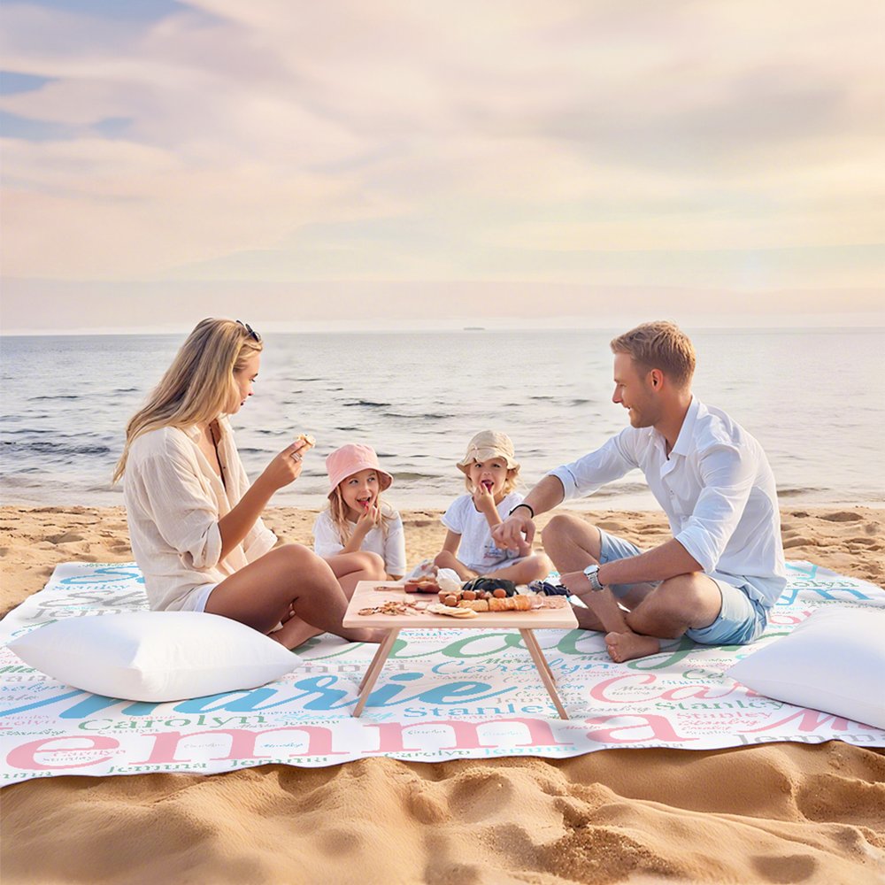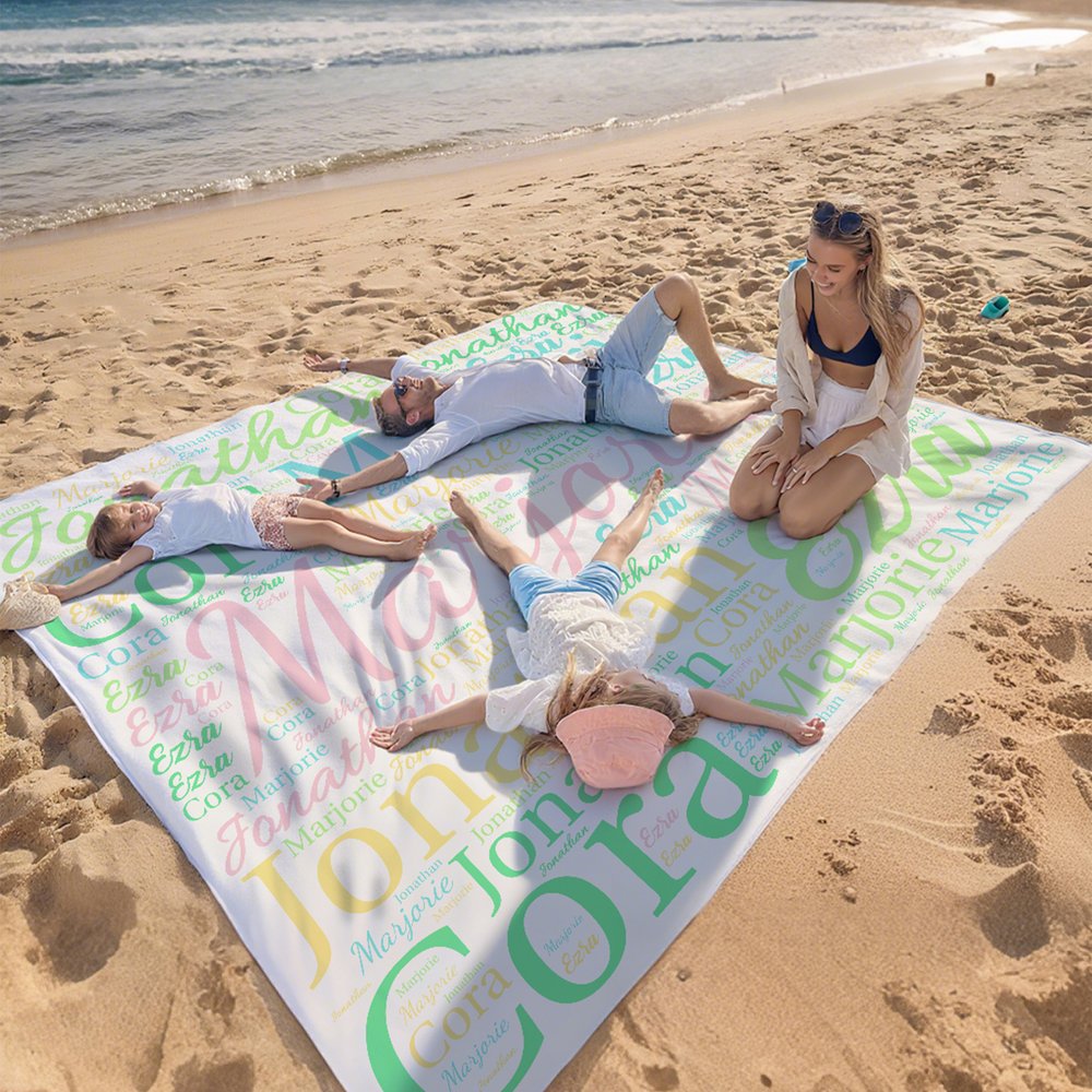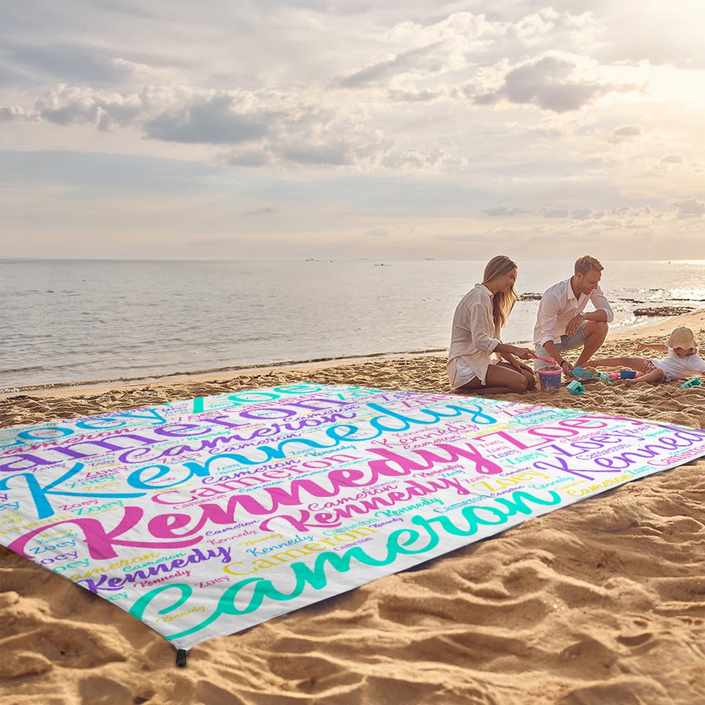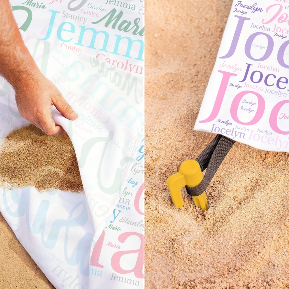 There are multiple colors of beach blankets for you to choose from, and you can print your desired exclusive name on the beach blanket. These names will be presented in different fonts on the blanket, making it beautiful and eye-catching.