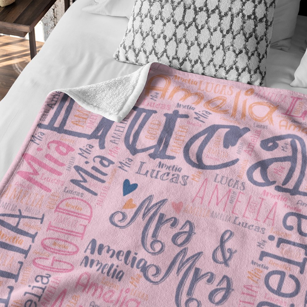 This personalized fleece blanket not only offers warmth and comfort but also serves as a stylish decorative piece. Its vibrant, multicolor word cloud design adds a visually appealing touch to any room. Whether it's draped over a couch, displayed on a bed, or used as a picnic blanket, it brings a personalized, artistic charm to your living space.