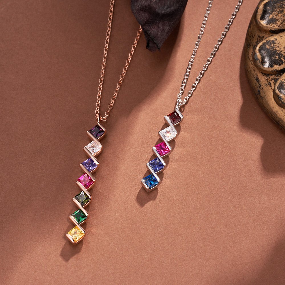 Create a unique piece of jewelry featuring 1-8 birthstones, each representing a cherished family member. This elegant necklace allows you to keep your loved ones close to your heart, with each gemstone symbolizing a special birthday within your family circle.