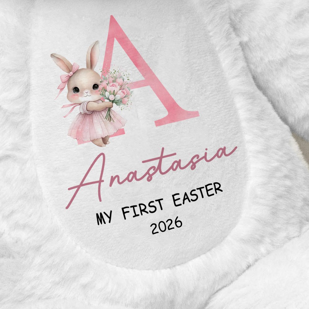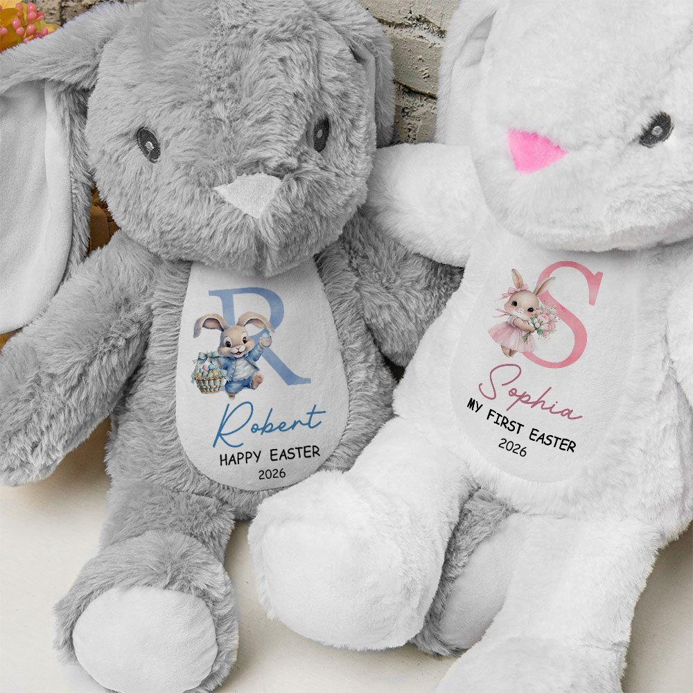 Each bunny is crafted with an incredibly soft exterior, inviting kids to snuggle up with them. What truly sets these toys apart is the adorable initial-based flower-themed rabbit illustrations. The detailed and colorful artwork, featuring a cute bunny amidst delicate flowers, adds a touch of magic. Moreover, having the child's name and the significant year, such as the year of their first Easter, printed on the plush toy makes it a one-of-a-kind keepsake.