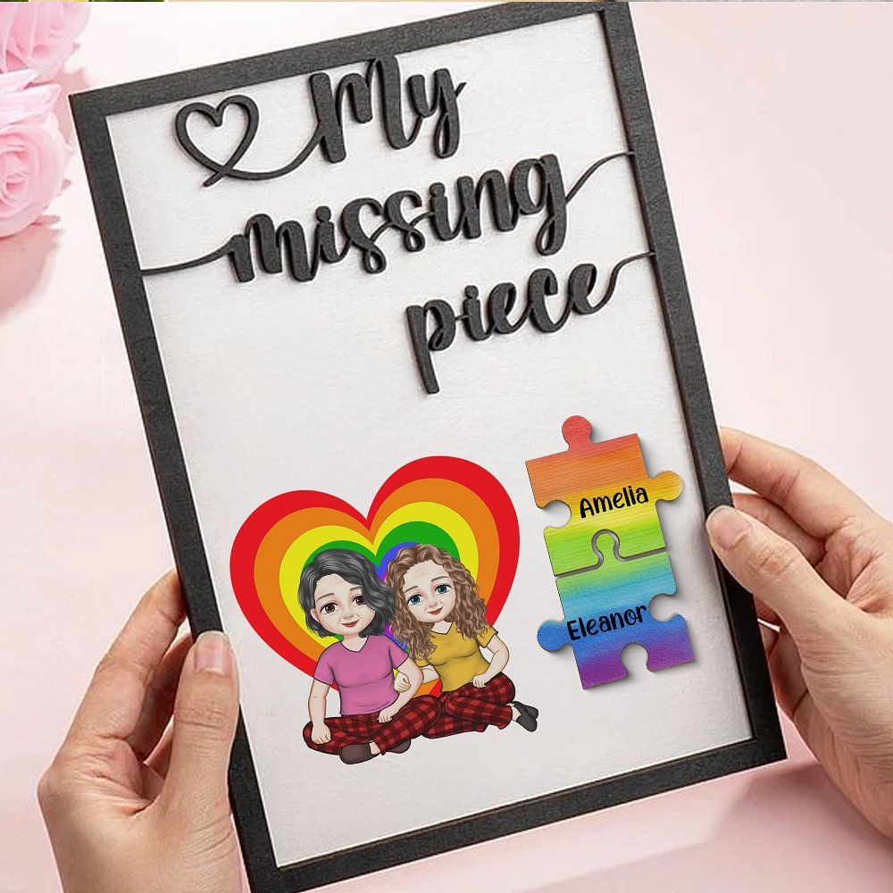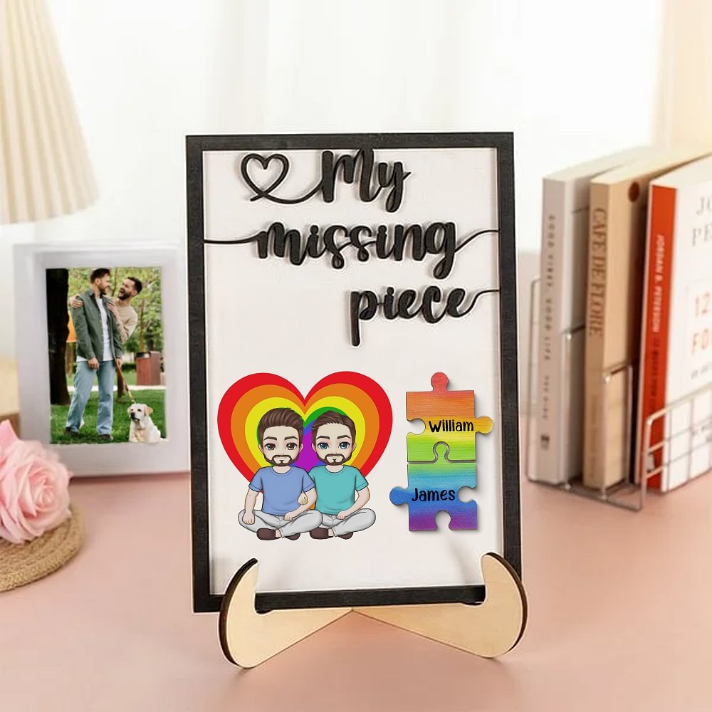 This custom keychain features two cartoon characters, designed to resemble you and your significant other, set against a vibrant heart background, paired with the beautiful phrase "My Missing Piece," symbolizing the sweetness and eternity of love. Whether you're a couple of any orientation or identity, this keychain embraces diversity. Express your passion proudly with a design that’s made for everyone.