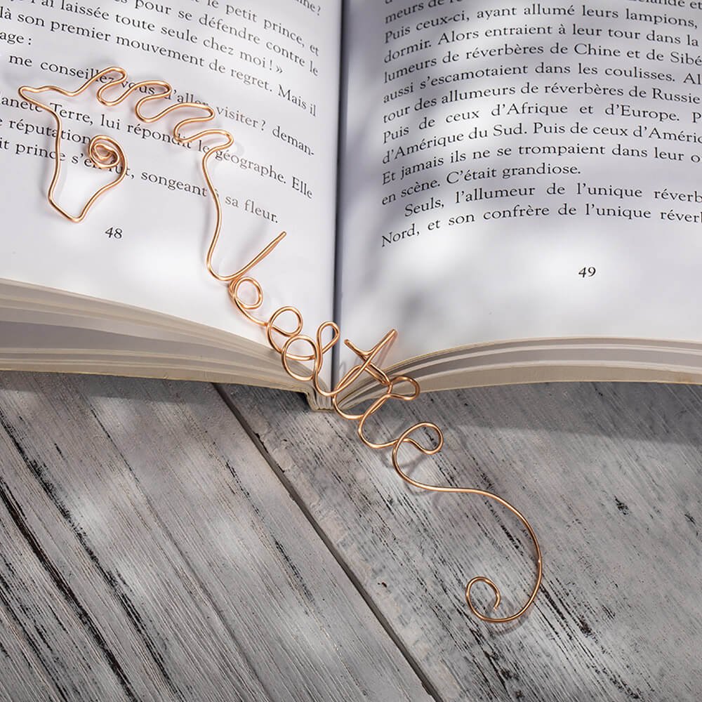 • When reading, do you want to have a unique bookmark? Callie's designers will meet your needs and design a beautiful and unique bookmark. This bookmark can choose the patterns of cat, horse, lotus, rose and love heart. The colors of the bookmarks are gold, silver, copper, and brown; choosing this super cute personalized name bookmark will make you feel happy in the process of reading! It is specially designed for cats/horse/flower lovers. With elegant curves and swirling decorations, it is an exquisite and practical gift. You can customize it with a name or a word of up to 10 letters! Its length is usually between 5-6 inches, depending on the length of the name/word used.