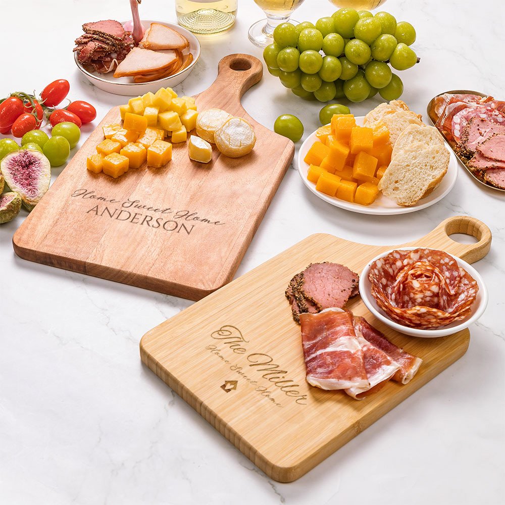 The personalized engraving of names and dates adds a unique and sentimental touch. Whether it's the names of a newlywed couple or a family's surname along with a particular date, it makes the board genuinely one-of-a-kind.