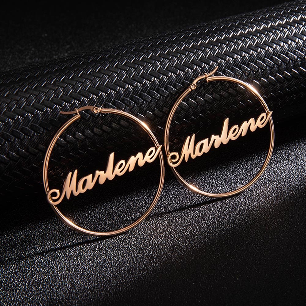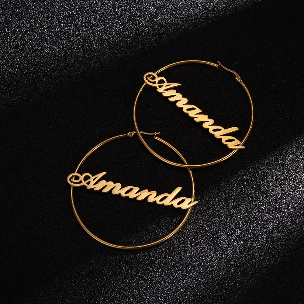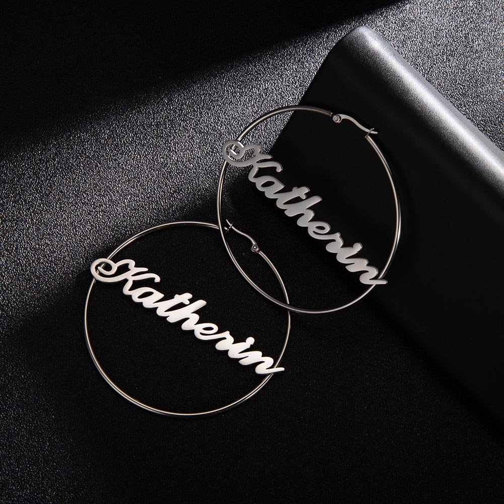 55MM(1.96INCH)/60MM(2.36INCH)/70MM(2.75INCH). Minimalist letter name earrings, light and comfortable texture, suitable for daily wear, simple and eternal. Can be matched with other jewelry.