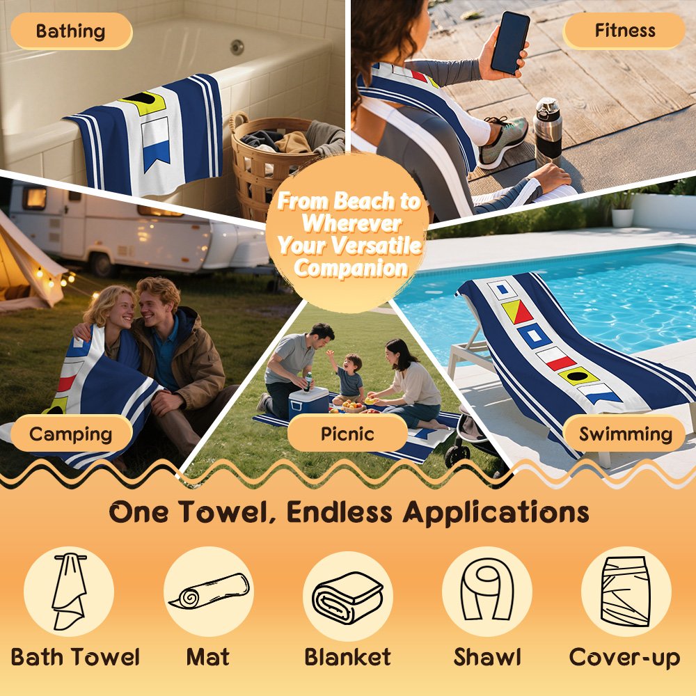 | Feature: | Super Absorbent, Fast Drying, Durable and Soft, Sand Free, Oversized, Lightweight and Portable, Nautical Flag Design |