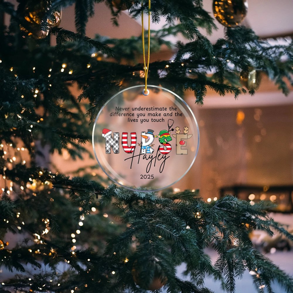 This Christmas ornament is specially designed for nurses, with the letters "nurse" adorned with various Christmas elements, creating a festive atmosphere. It also features inspiring words that remind us to cherish every moment that impacts others' lives. Additionally, you can customize the name and year on the ornament, making it a truly one-of-a-kind Christmas decoration.