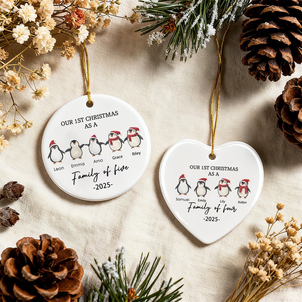 You can choose between two shapes: round or heart-shaped. Select 2–5 penguin patterns to represent family members and add custom names for each member. The cute design and durable ceramic material perfectly meet the need to celebrate and remember a special family milestone in a unique, heartfelt way.