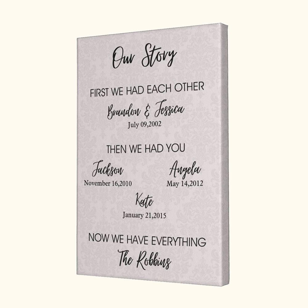This personalized canvas family painting is tailored to your home and perfectly presents the warmth and harmony of the home. Incorporate the family members' names and special dates into your beautiful paintings to make every detail feel like home. Hanging on the wall, it is the most beautiful storyteller of home. Customizable with 1-6 children's names for large families.