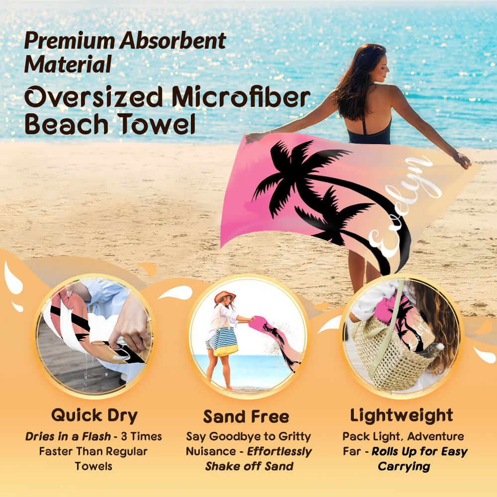 Feature: Super Absorbent, Fast Drying, Sand Free, Durable and Soft, Oversized, Palm Tree Design