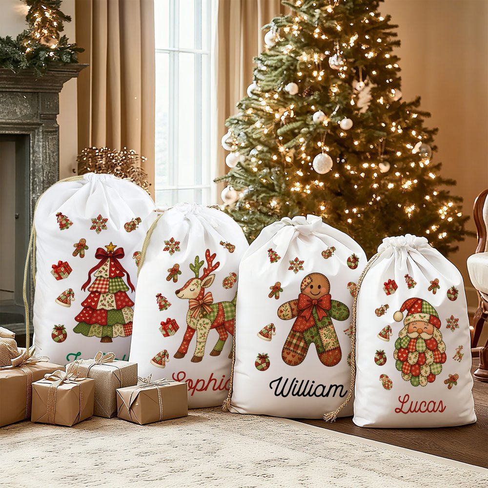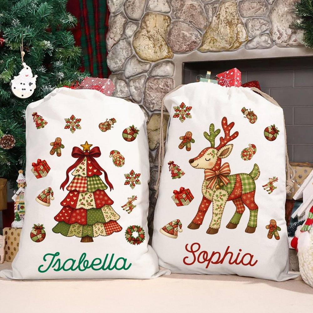 Crafted from sustainable canvas, this durable and reusable bag reduces paper and plastic consumption while meeting eco-conscious needs. Its sturdy construction maintains shape over time, while the fine surface texture clearly displays Christmas motifs and personalized names. Combining environmental responsibility, longevity, and aesthetic appeal, it's designed for repeated holiday use.