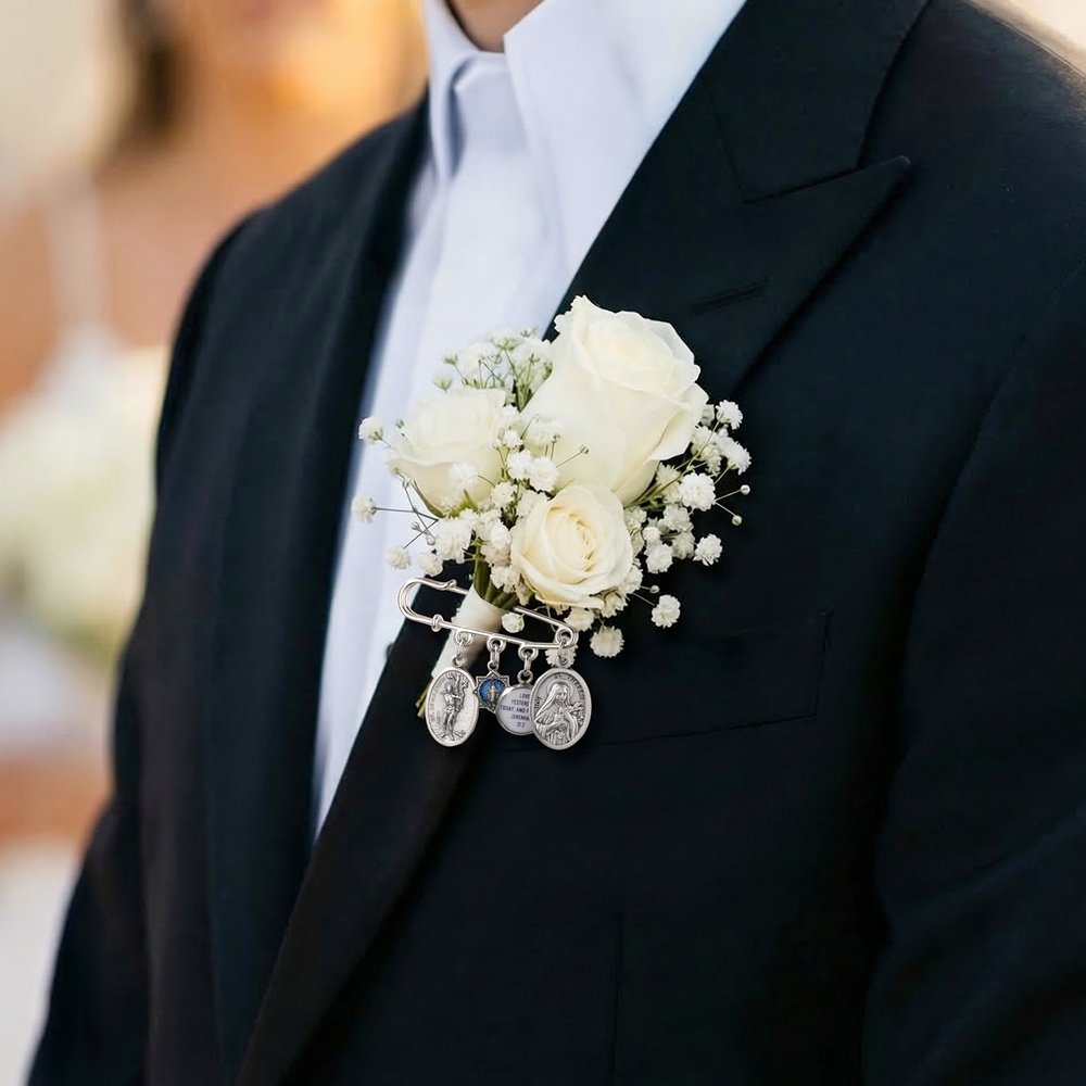 Perfect for the groom to wear on the inside or outside of his suit or shirt on his wedding day, adding a touch of elegance to his look. After the wedding, it can be carefully preserved as a spiritual keepsake, a memento of the marriage, or passed down through generations.
