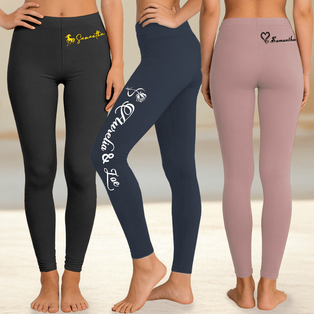 These yoga pants offer diverse customization options for text and patterns: text can include names, nicknames, inspirational phrases, or team slogans; pattern options include paw prints, hearts, doves, butterflies, horses, and more, and can be freely combined on the waist, lower back, and outer calves. 13 color combinations are available, allowing you to create a unique and recognizable personal workout item.