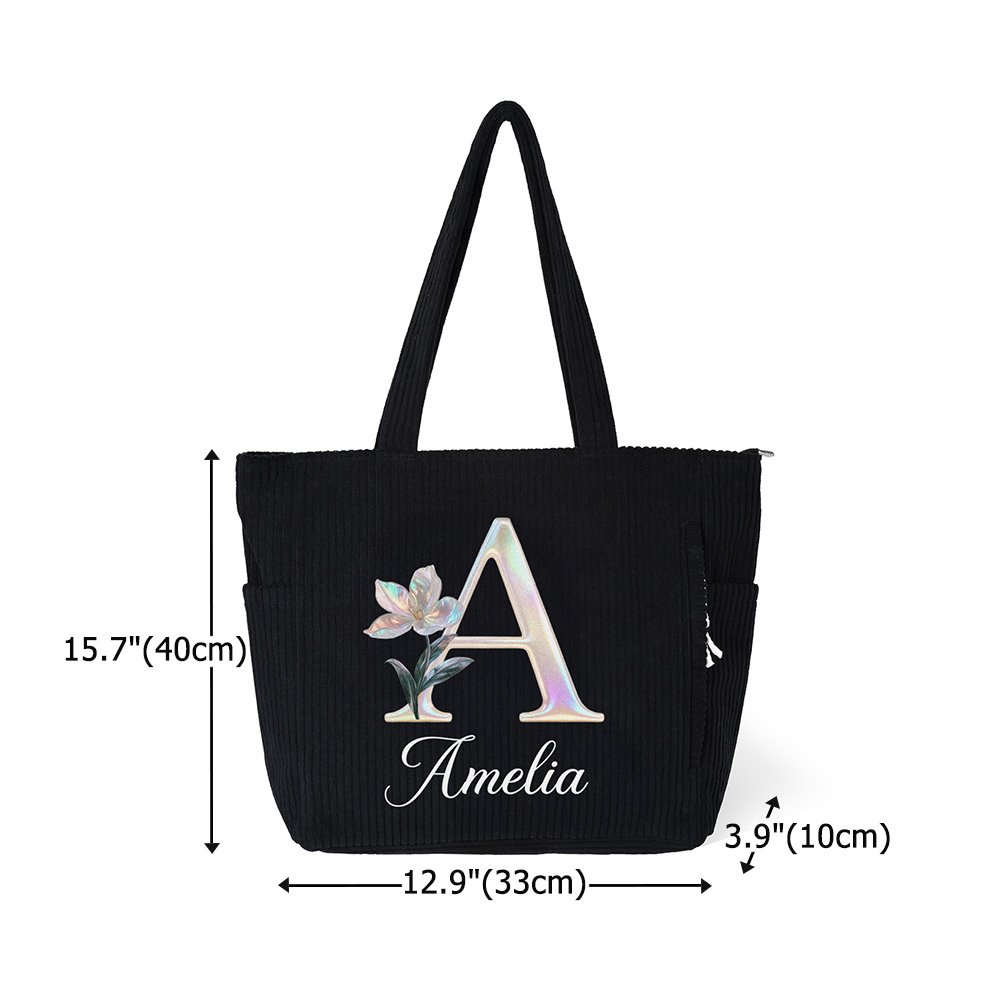 This tote bag features pearl-effect birth flower patterns as its core, combined with customizable names and initials to weave personal identity into the design. Its clean silhouette pairs seamlessly with the retro corduroy fabric, turning everyday commutes into a stylish expression of personal flair.