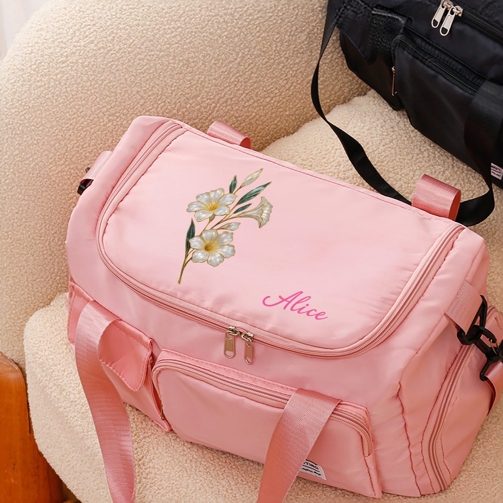 This travel bag artfully integrates your exclusive birth flower illustration and name into its design, weaving together the language of nature with personal identity to breathe vibrant life into the bag. It transcends mere functionality to become a heartfelt declaration of "you"—with every journey accompanied by your own lucky bloom, showcasing distinctive personal style and taste.