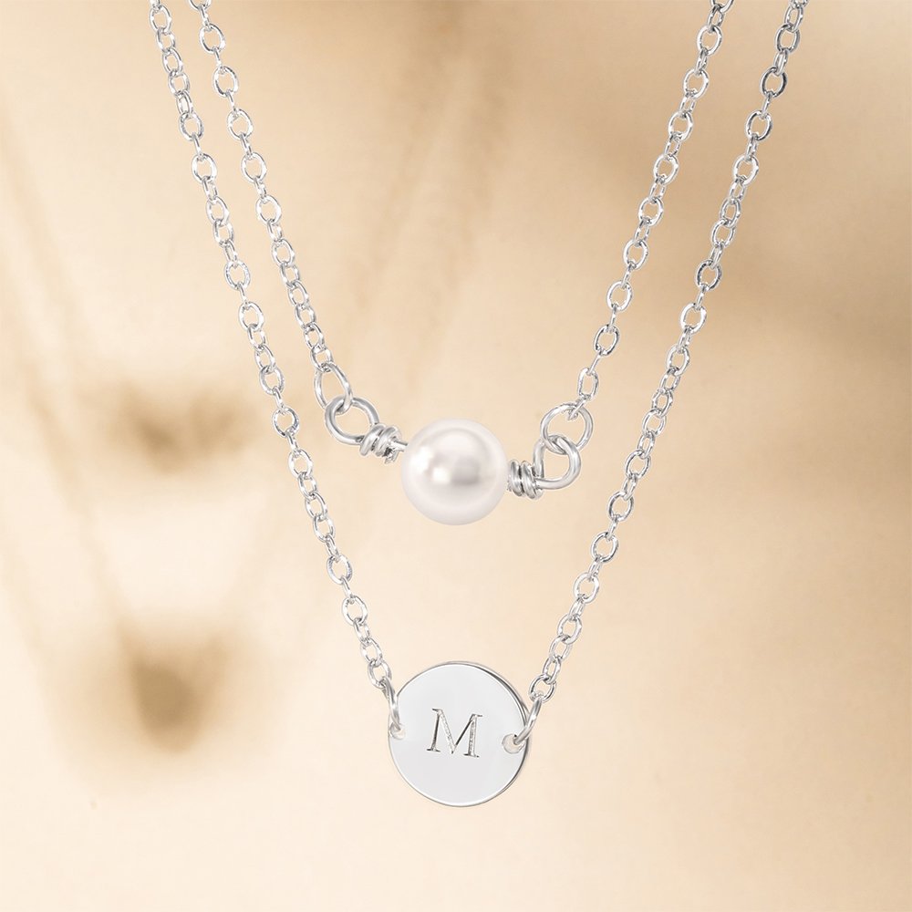 Our exquisite layered initial pearl disc necklace is an embodiment of elegance and personalization, offering a unique and sophisticated way to showcase your individuality. At the heart of this design is a delicate pearl pendant, symbolizing purity and femininity. Hand-selected for their luminosity and flawless luster, these pearls are carefully strung on a dainty chain, resulting in a captivating piece that effortlessly exudes sophistication.