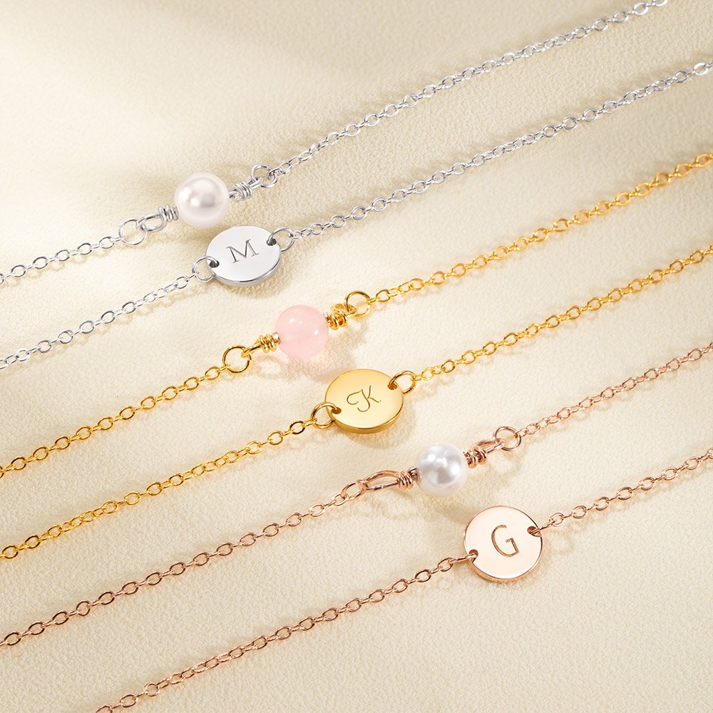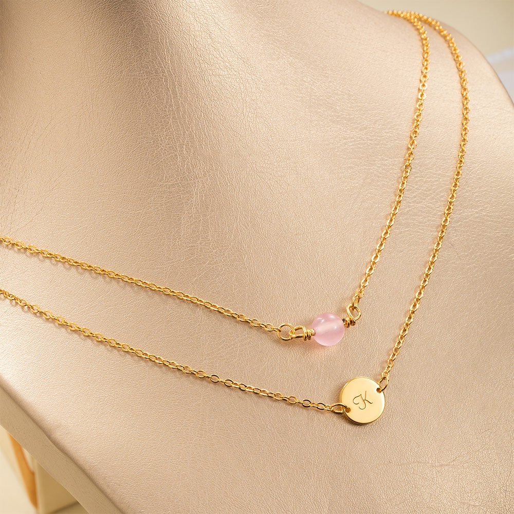 What sets this necklace apart is the addition of our customizable initial disc charm. Crafted with meticulous attention to detail, this charm allows you to personalize your necklace by adding the initial of your choice. Whether it be your initial or that of a loved one, this customization option adds a sentimental touch, making it a truly special piece to treasure forever.