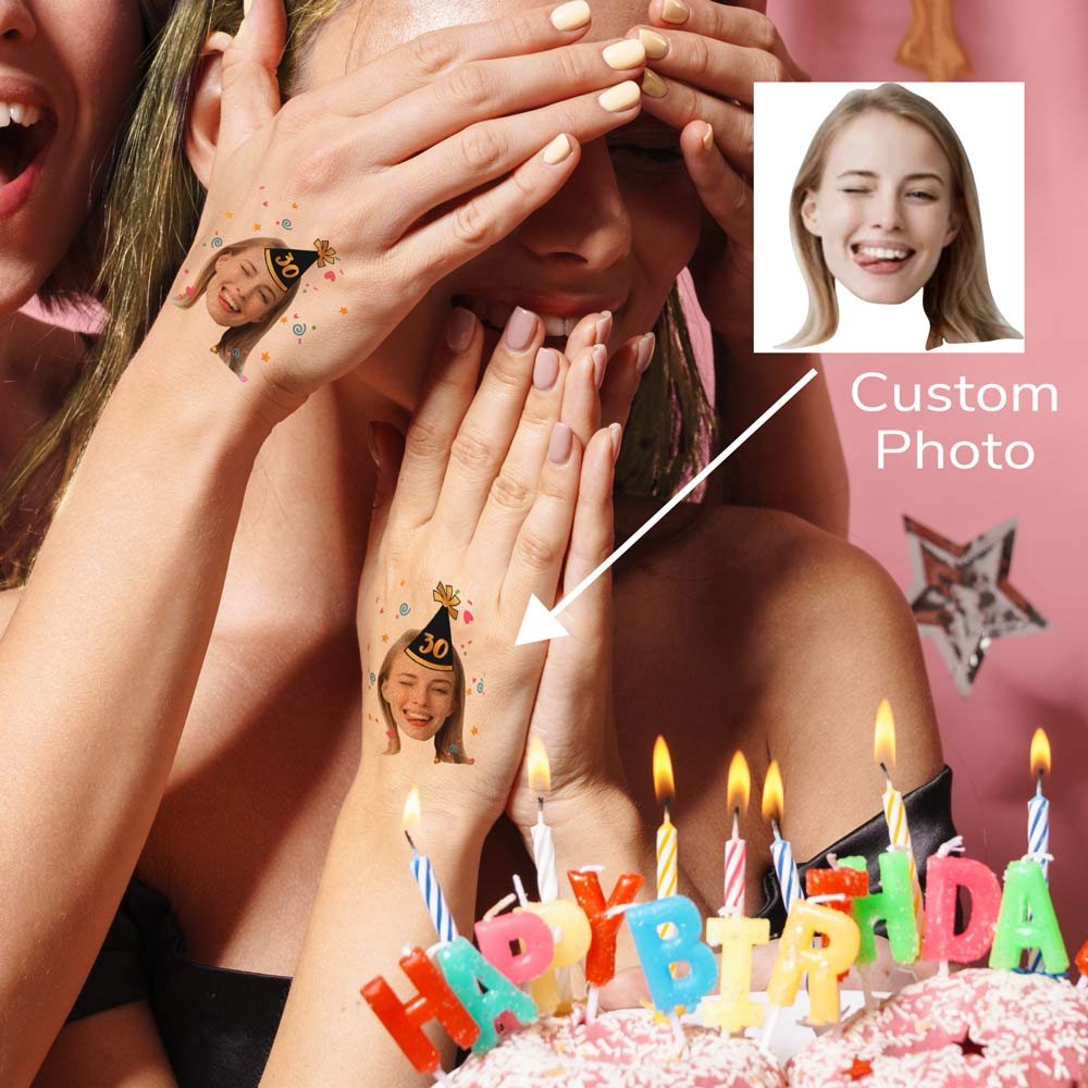 The personalized touch of including your face photo, name, date, or age makes these stickers truly special and tailored to your event. Imagine the excitement on your guests' faces as they see their avatars beautifully displayed on their skin, creating an instant connection and a sense of belonging.