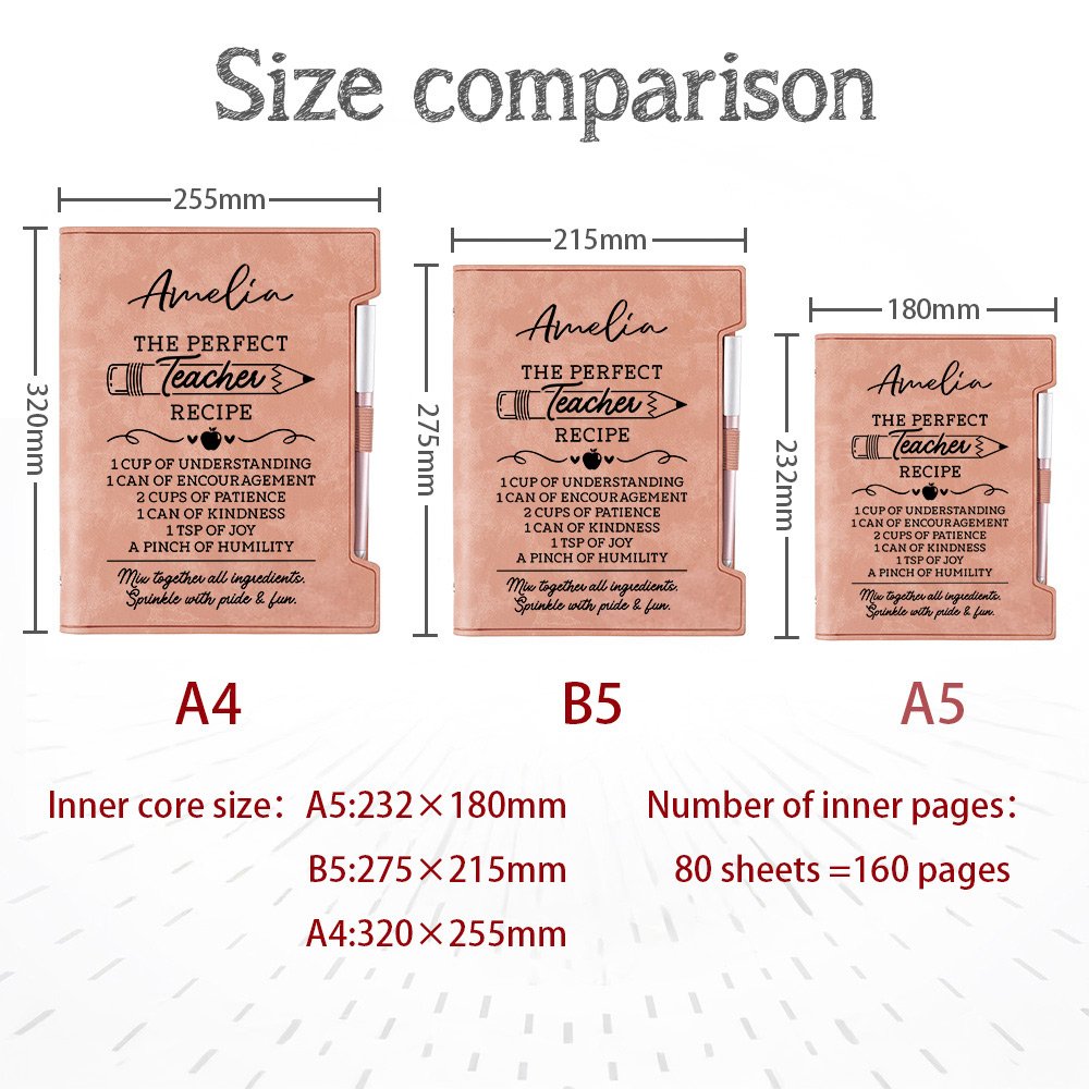 This notebook features a vintage-colored leather cover with "The Perfect Teacher's Recipe" to showcase the quality of teachers and pay tribute to the dedication of educators. You can also choose to add your name, expressing your admiration and gratitude for your teacher, and adding a touch of fashion to any desk or classroom environment.