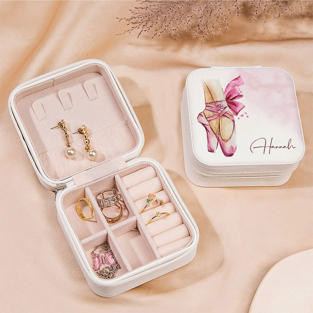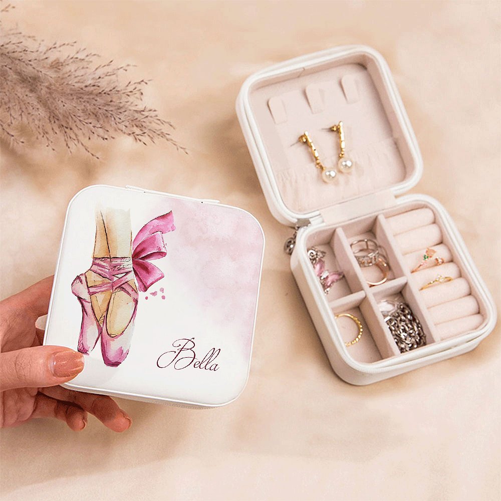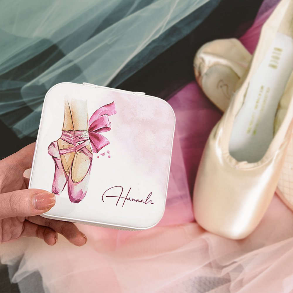 This jewelry box is inspired by elegant ballet shoes and uses delicate watercolor art to bring out the lightness and softness of ballet dancers on the surface of the box, making it highly artistic. This unique design element not only adds a touch of glamour but also embodies a woman's elegance and poise, making it a delightful accessory for any occasion.