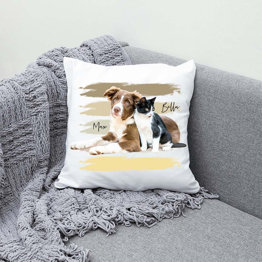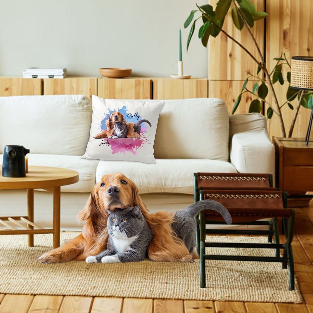 This unique pillow cover is perfect for pet lovers, featuring a customized photo and name of their beloved pet. With four artistic styles to choose from - digital painting, oil painting, watercolor, or sketch - it beautifully captures the essence of any furry friend.