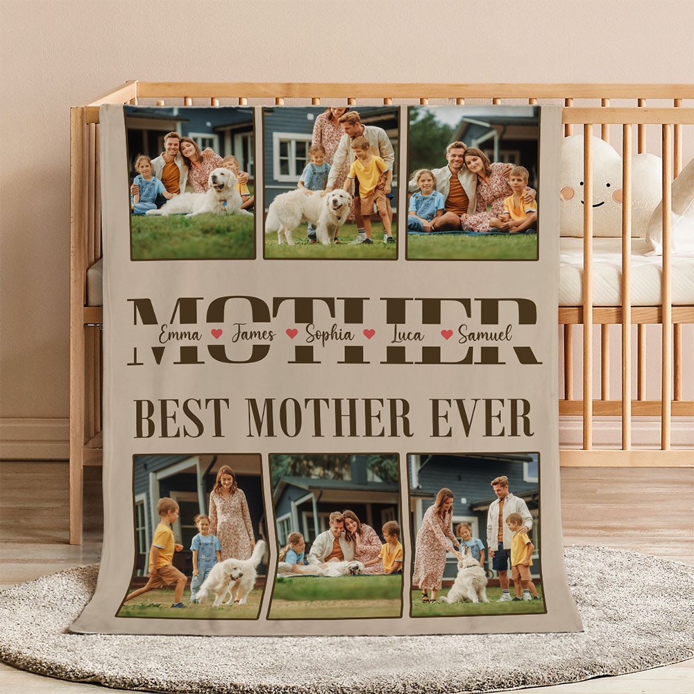 The blanket adopts a collage photo design, you can upload 6 family photos, freely arrange and combine them, and present a unique visual effect. Paired with a warm title, the child's name, and a special text, create a warm mark exclusive to the family. Each blanket is a picture of love, recording the deep affection between mother and child.