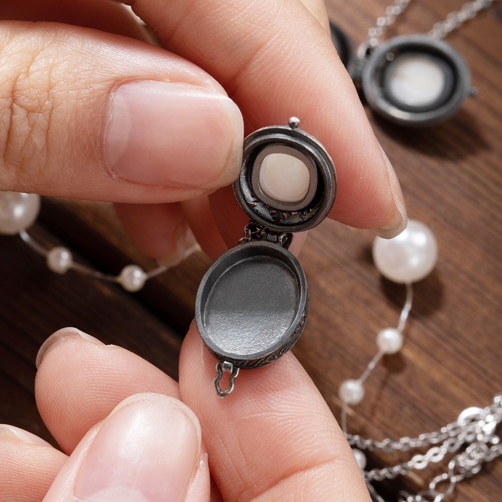 The design of this necklace is designed to keep things like hair or teeth that have passed out. Express your nostalgia for them.