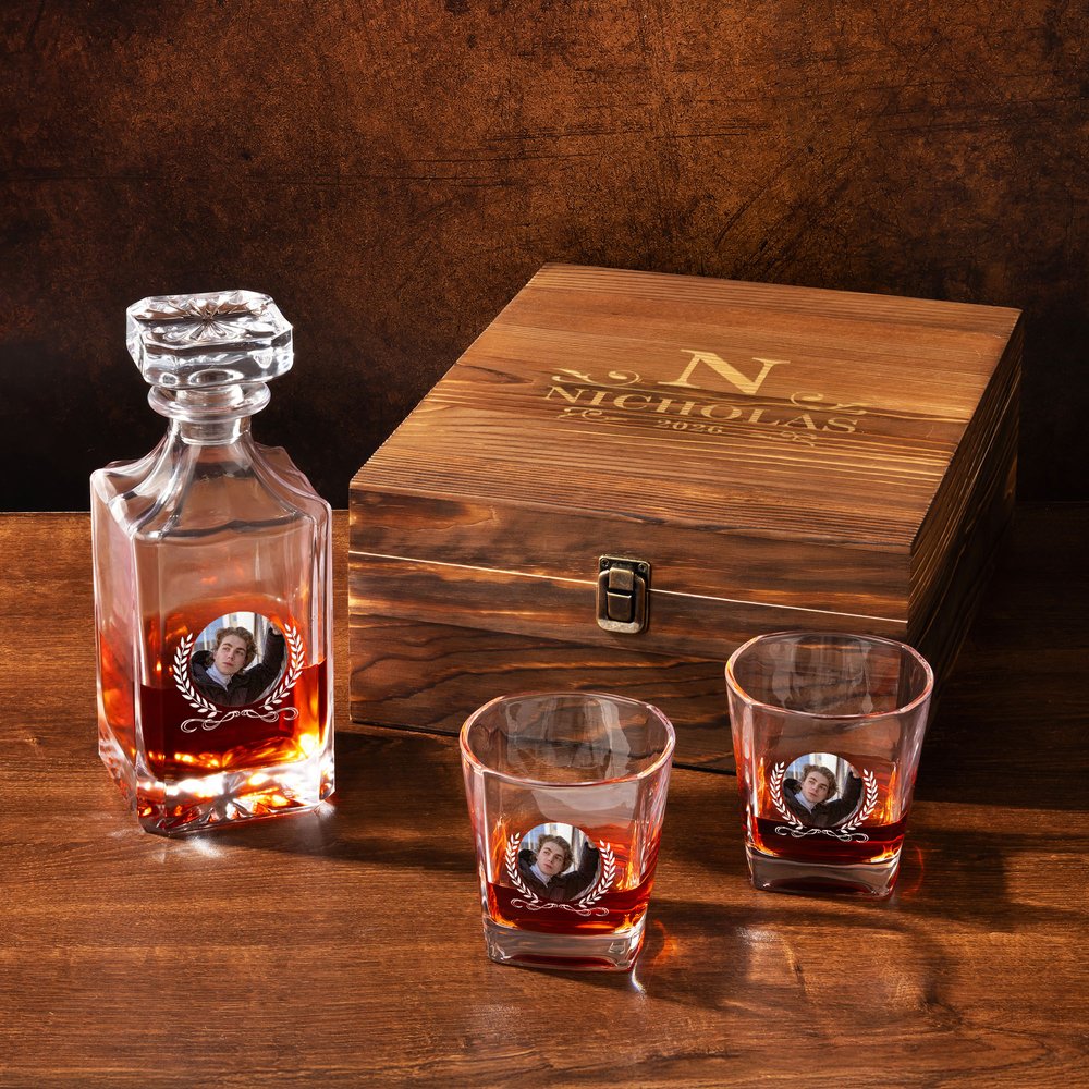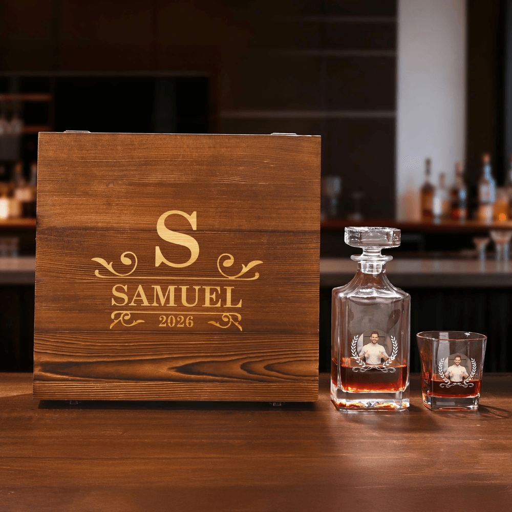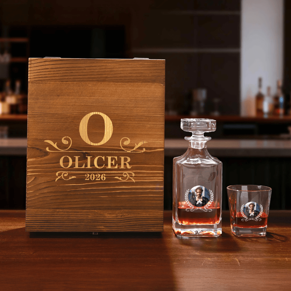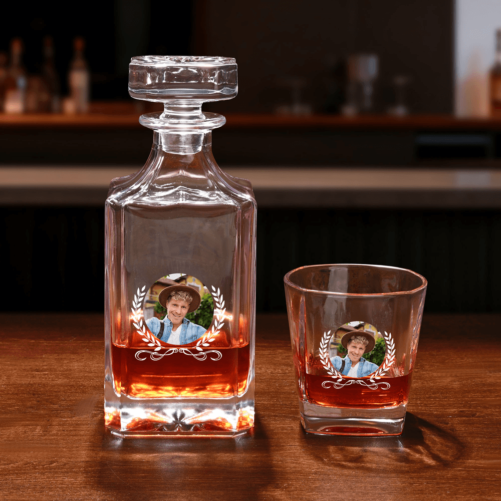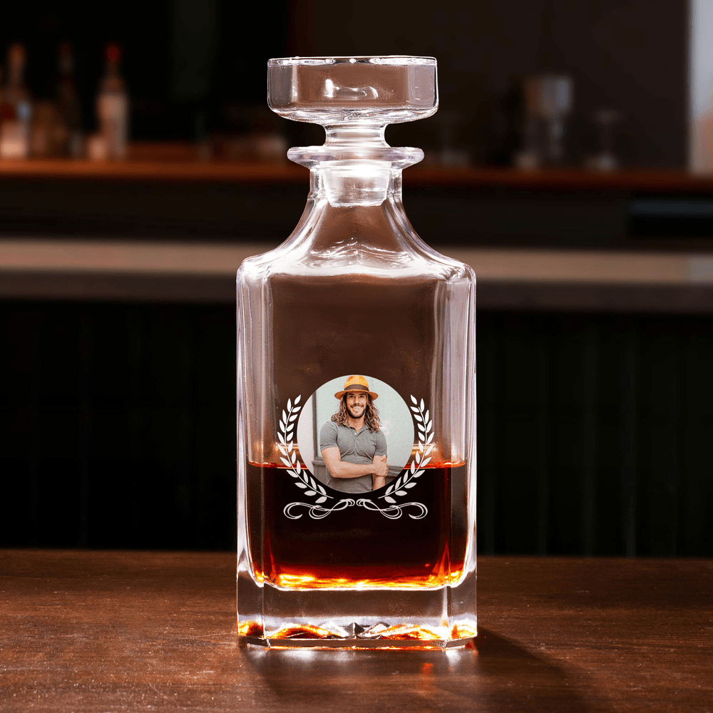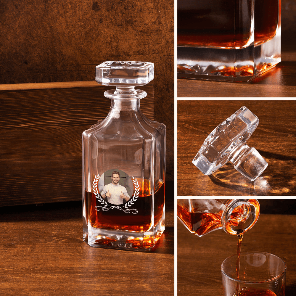 Personalized Photo Whiskey Decanter with Engraved Name and Date Birthday Anniversary Gift for Men Friends
