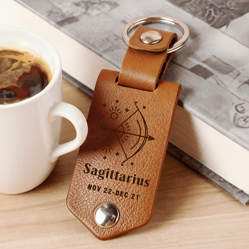 Personalized Photo Zodiac Sign Design PU Leather Keychain with Engraved Text Birthday Anniversary Christmas Gift for Family Friends