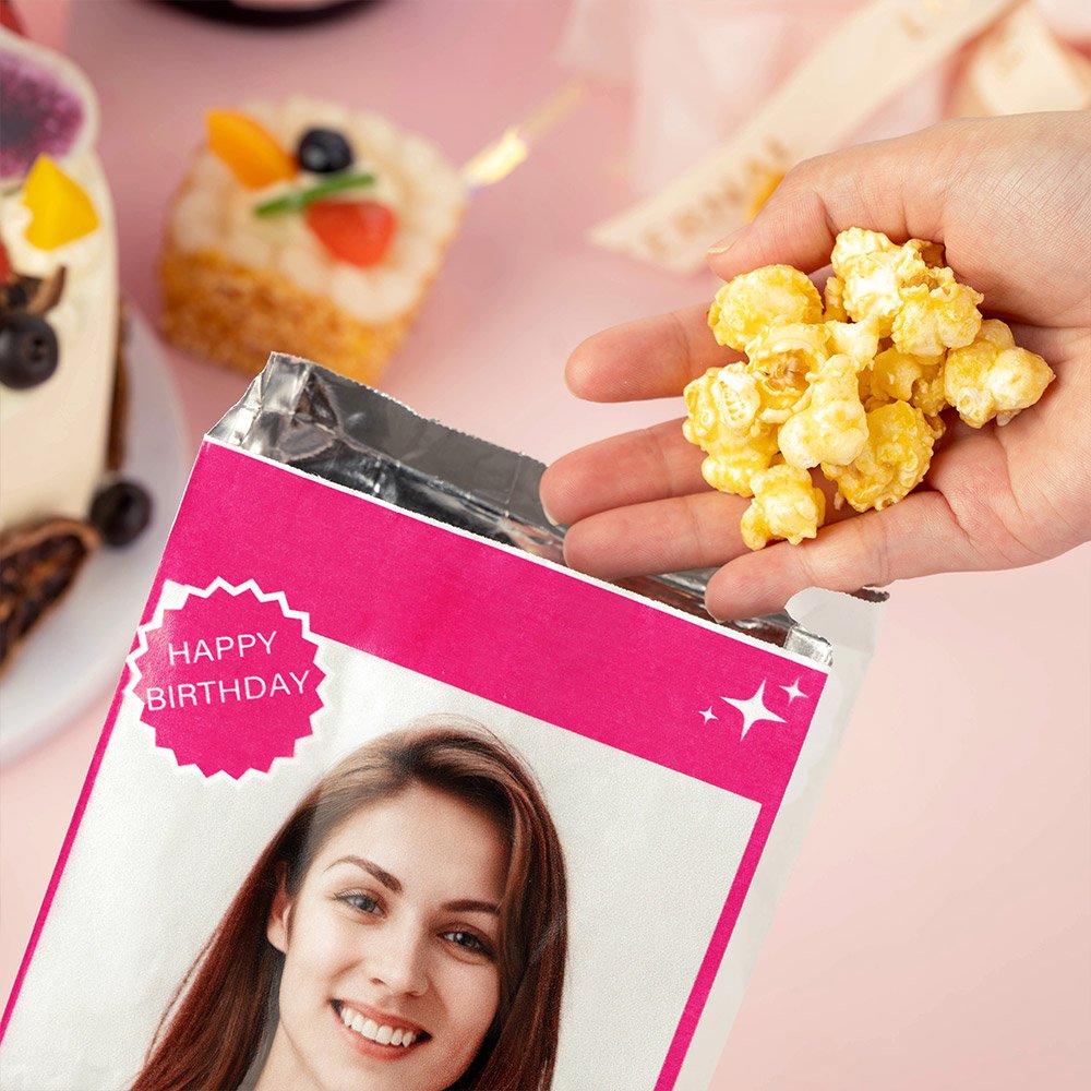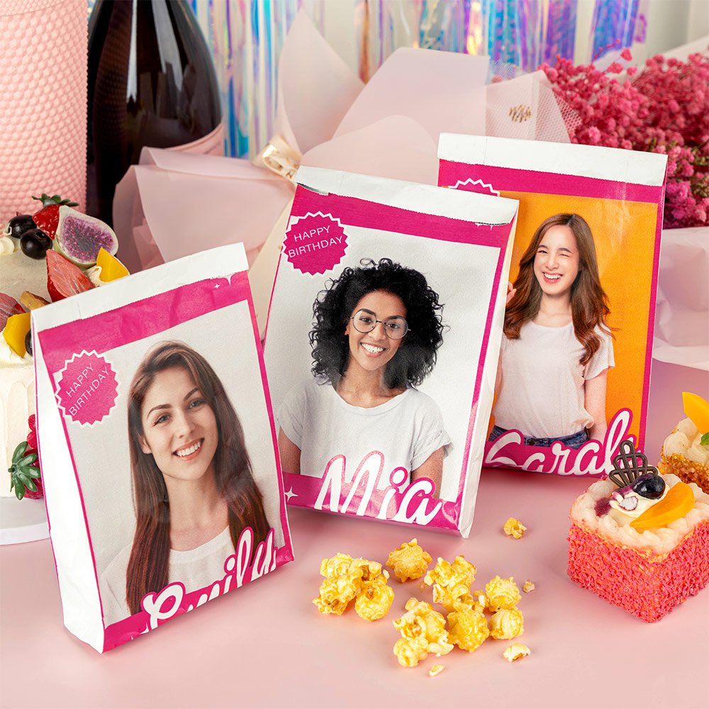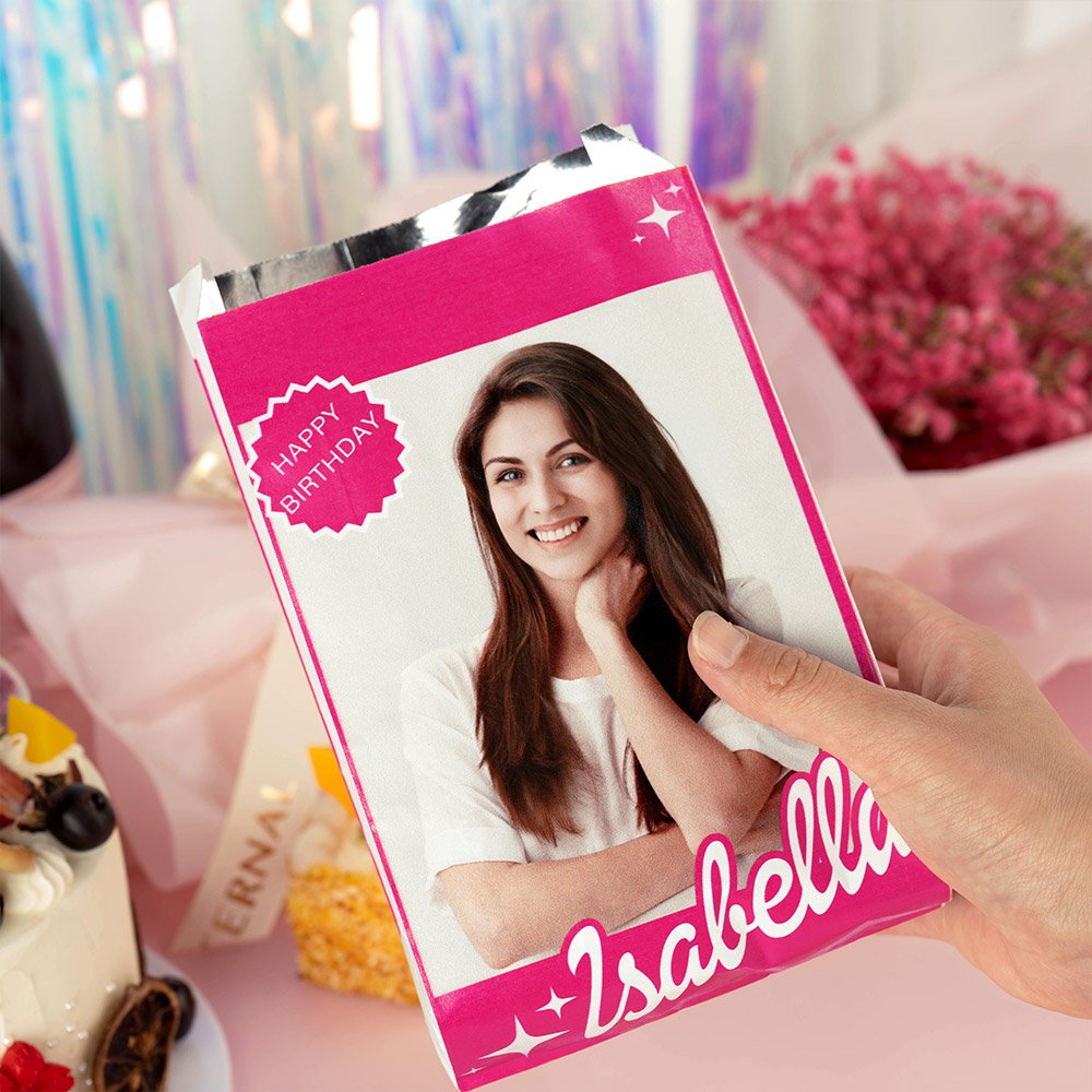 This pink-themed personalized photo-named treat bag is designed for girls. Each bag has a pink hue. It is not only simple food packaging but also a magical prop that can create an immersive party experience. There are 5 bags in a set. When girls see their favorite snacks packed in such a beautiful, personalized treat bag, they will be immediately attracted and thrown into the atmosphere of the party.