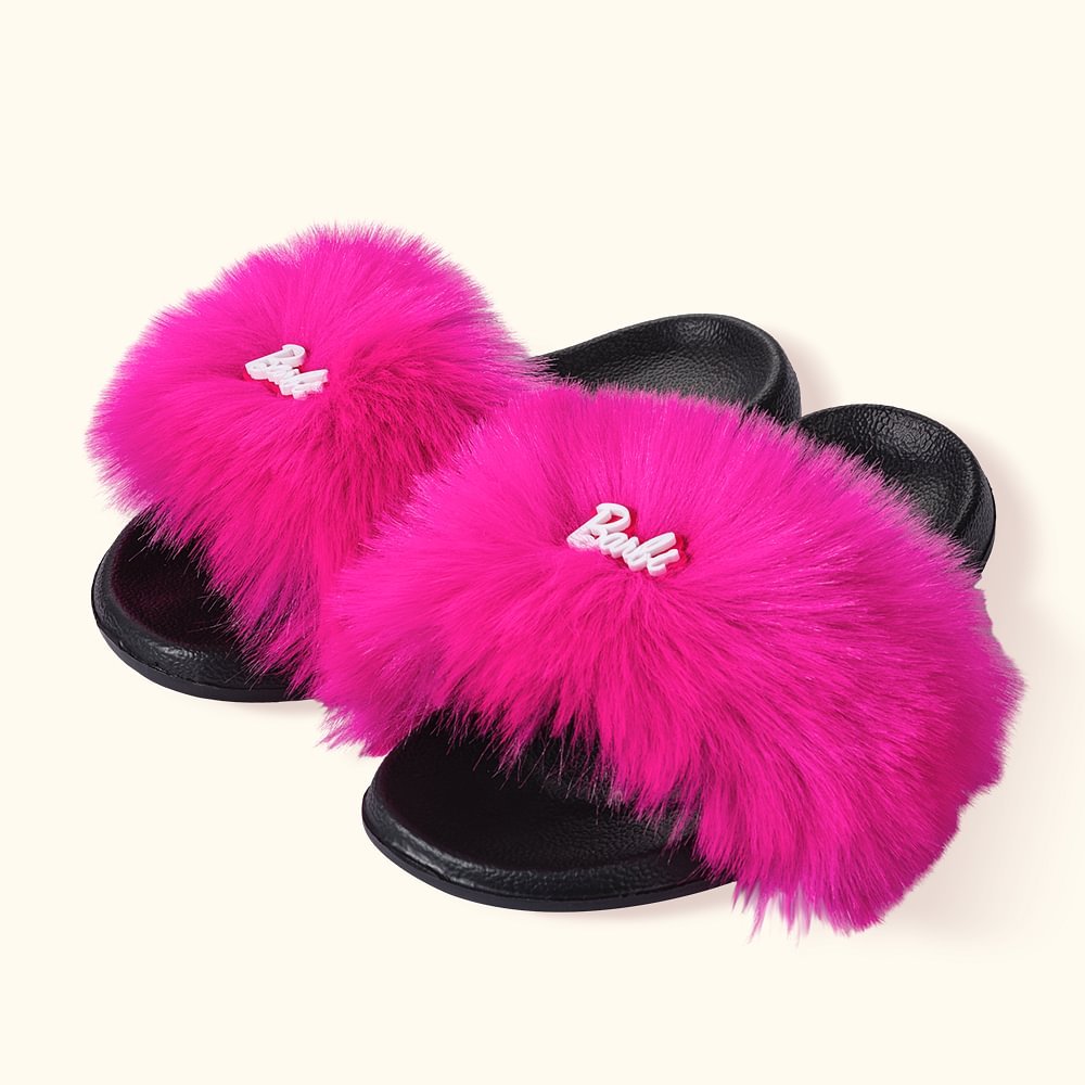With their sleek one-strap design, these slippers are suitable for various foot shapes and sizes. The pink hue and faux fur detailing exude bold style, making them a fashion-forward choice. Whether you're lounging at home or stepping out, these slippers effortlessly complement any outfit.