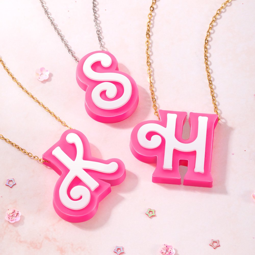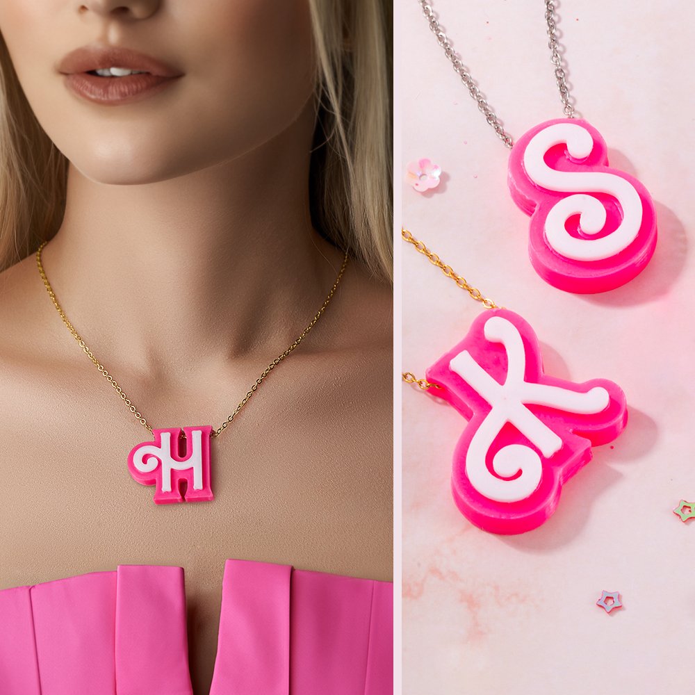 This adorable pink necklace is the perfect accessory for any girl. With its customizable initial pendant, she can proudly wear her own first letter in a unique way.