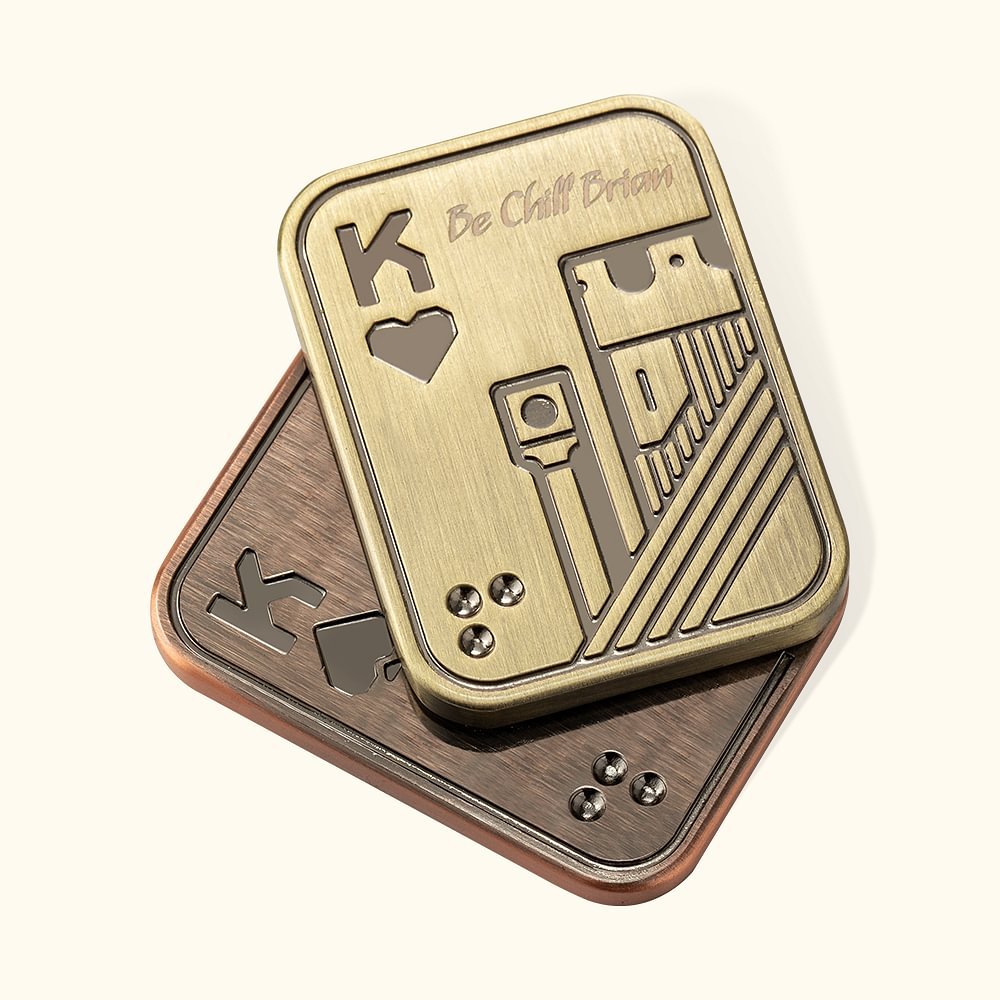 The Poker Fidget Slider is entirely made of metal, it's not particularly heavy, but it will carry some weight in your hand, which will make it feel better in your hand. The front of the slider is engraved with beautiful poker-style graphics. Every detail of the fidget slider is precisely machined, and the color of the metal is processed through a special process to make the surface more delicate and smooth, making it more comfortable to hold.