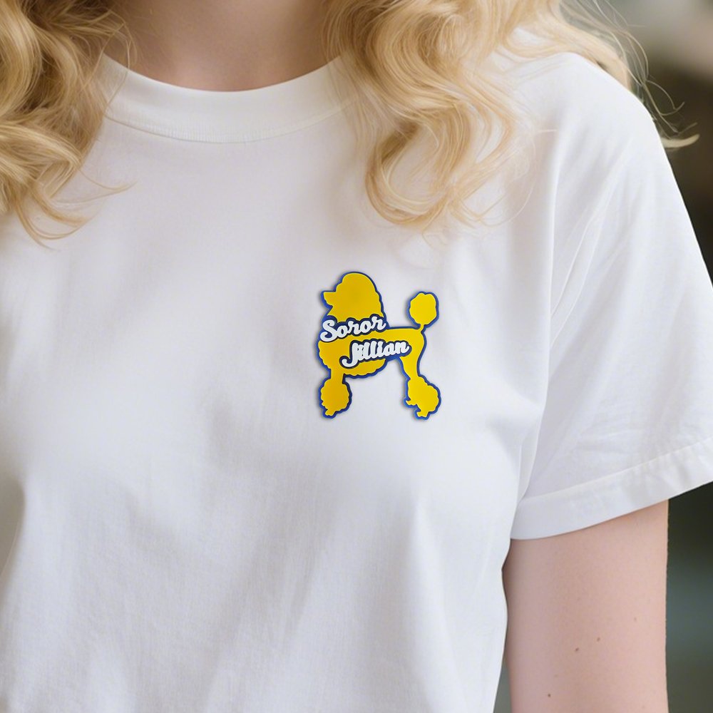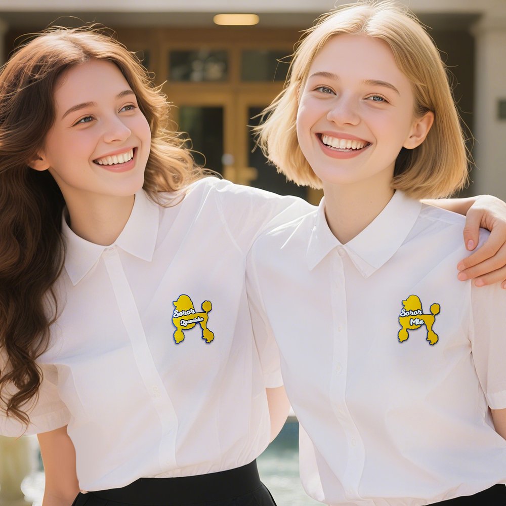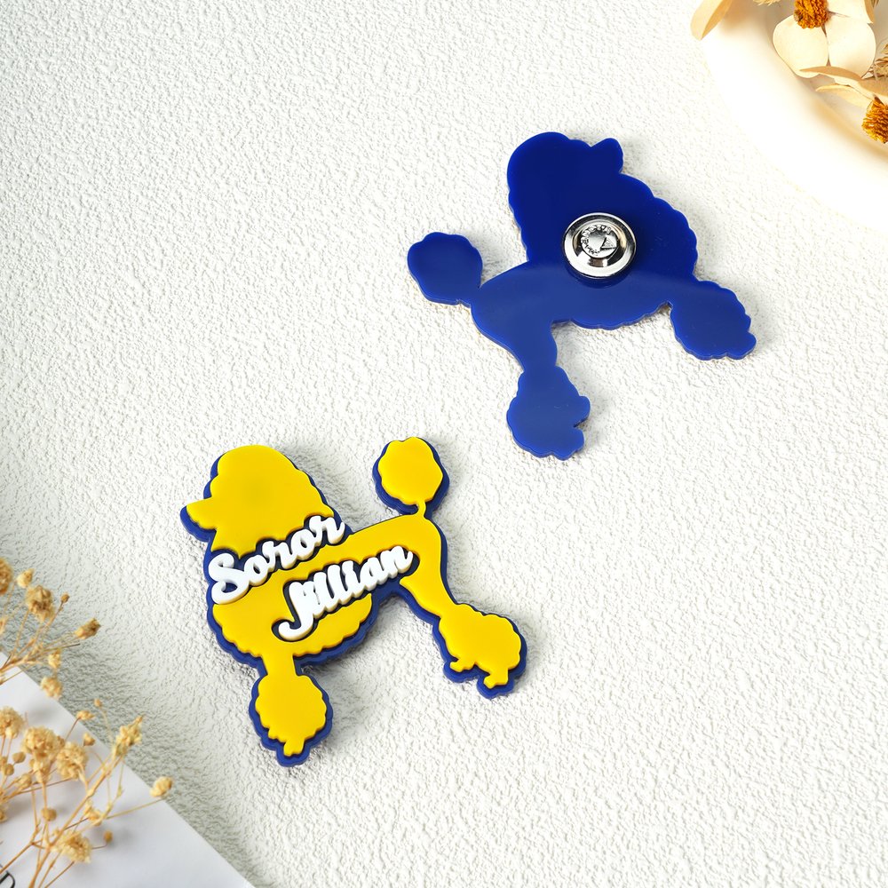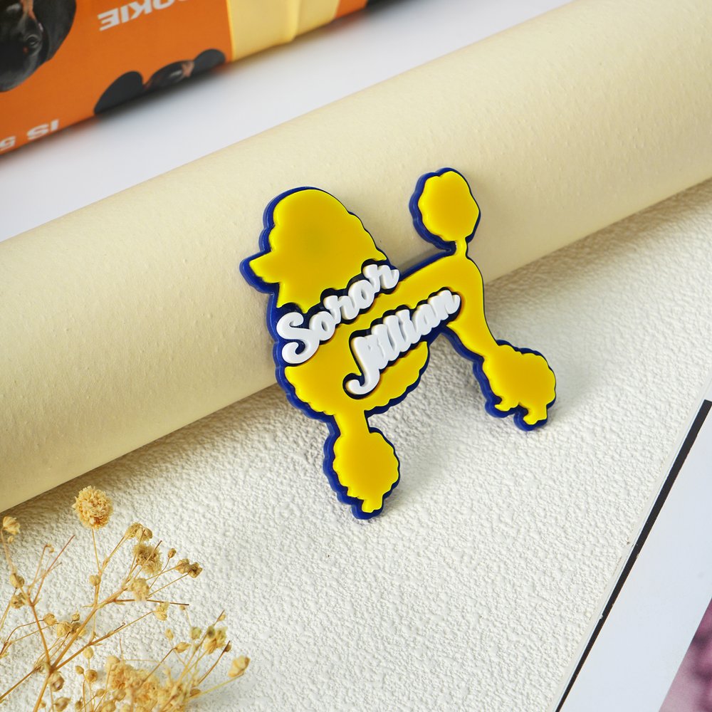 Let your uniqueness shine with our custom acrylic name pins! We offer eye-catching poodle-shaped designs and can customize your name to reflect your personality.